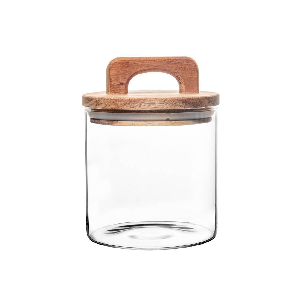 Porta Mantimento De Vidro Com Tampa De Acácia 700Ml