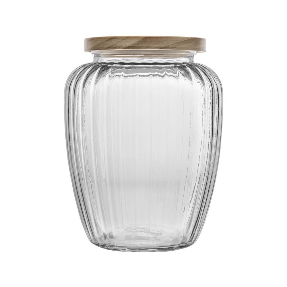Porta Mantimento De Vidro Com Tampa De Pinus 1,9L