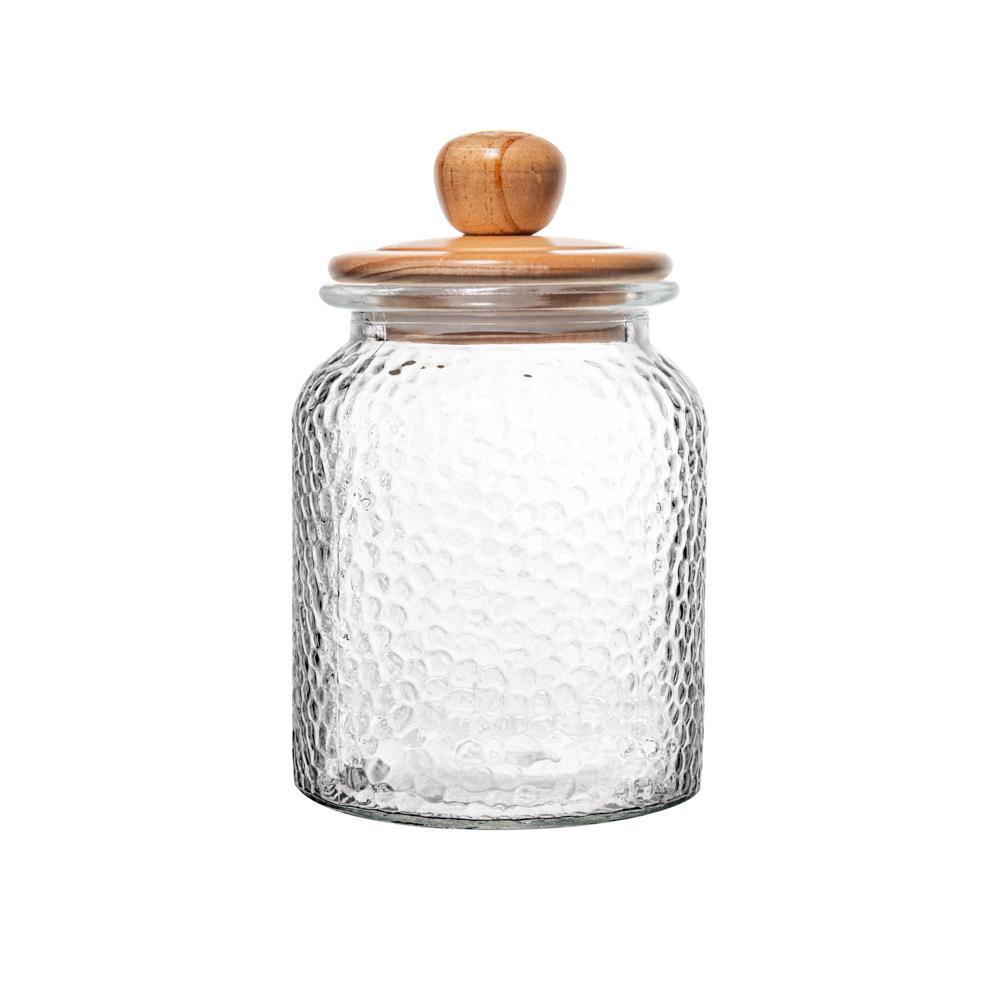 Porta Mantimento De Vidro Martelado Com Tampa De Bambu 1L