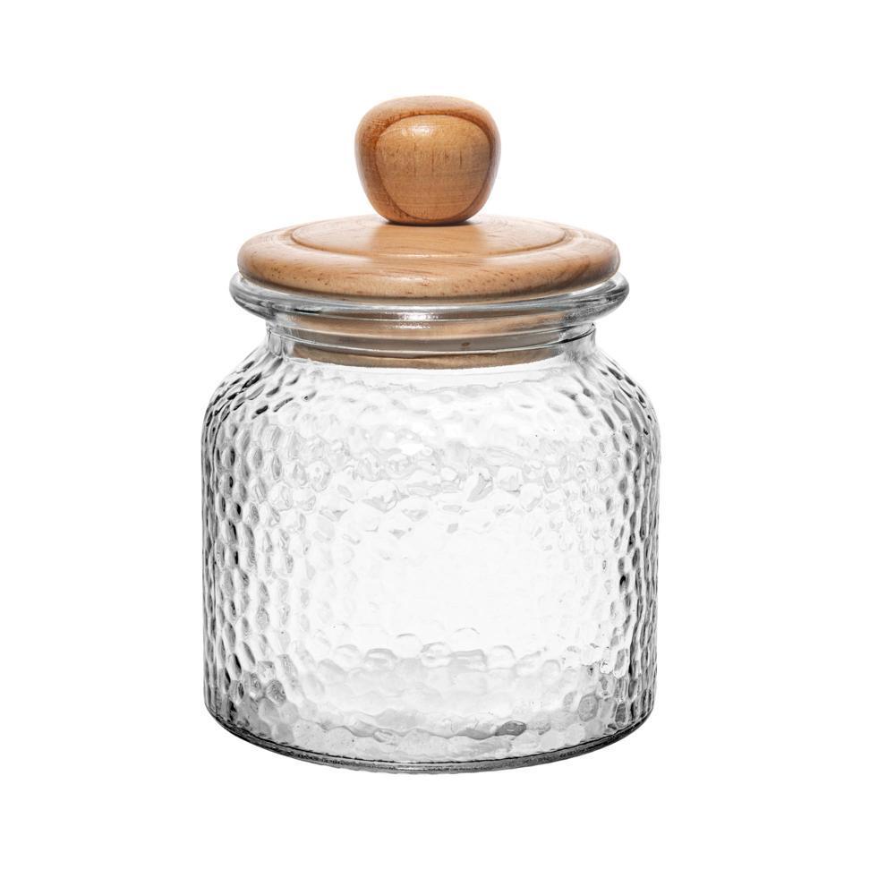 Porta Mantimento De Vidro Martelado Com Tampa De Bambu 700Ml