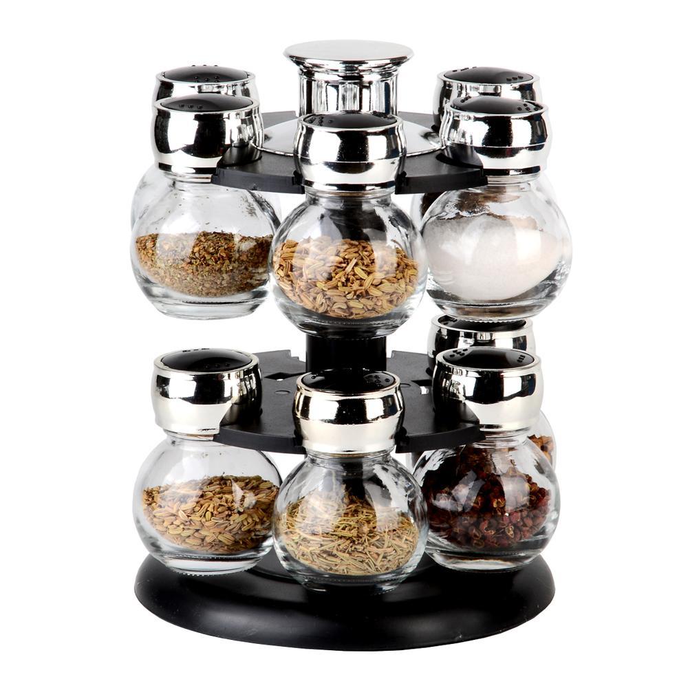 Kit Porta Temperos de Vidro com Suporte - 12Pçs