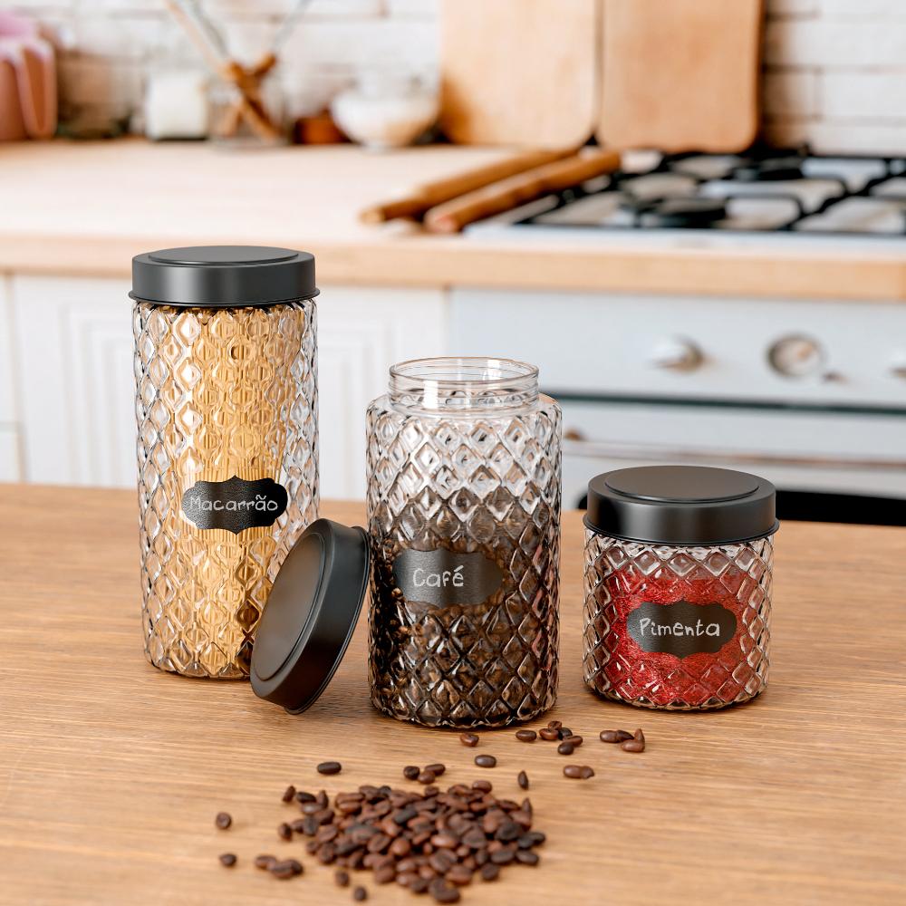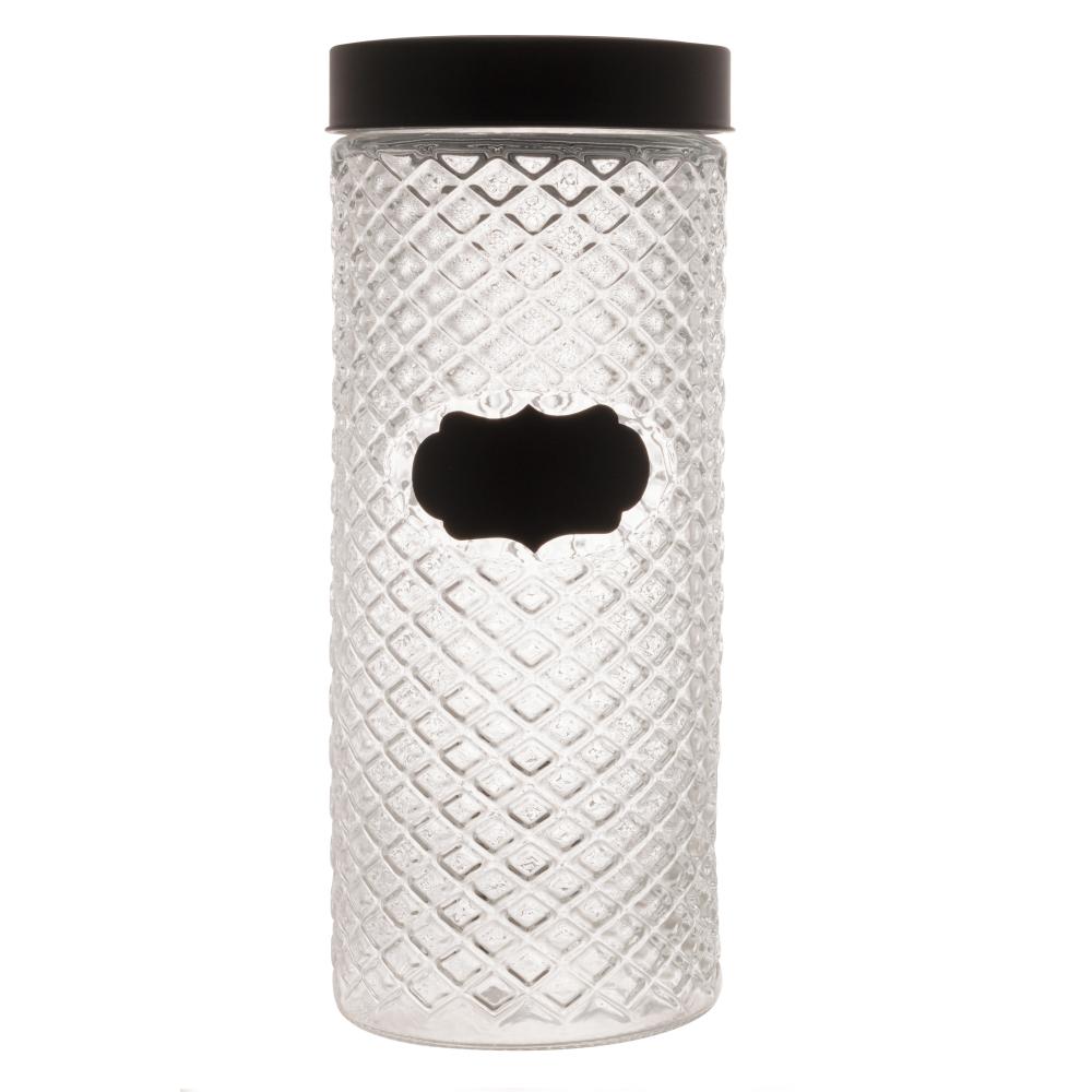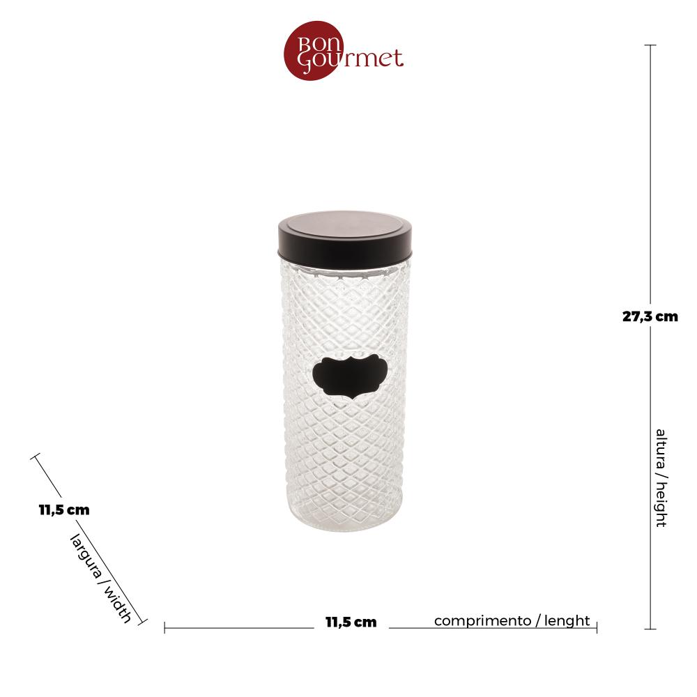 Pote de Vidro com Tampa Preta Label 11cm x 28cm 2,1L