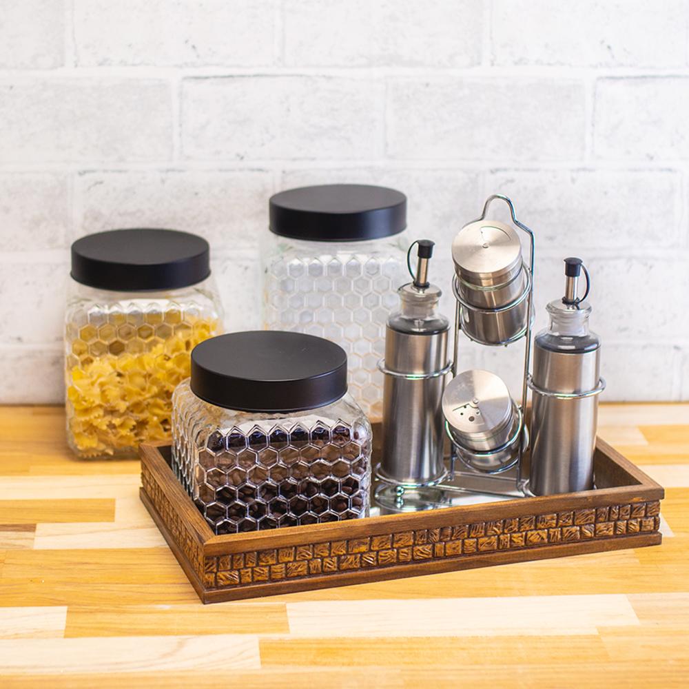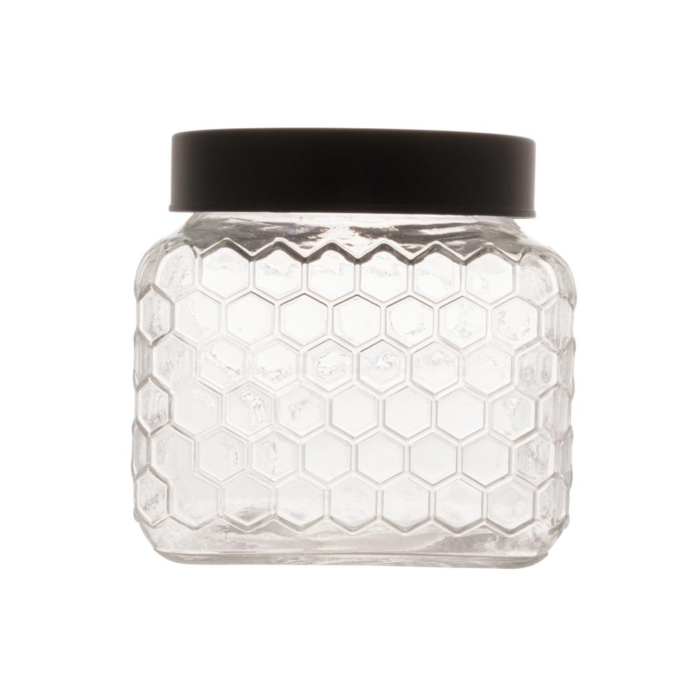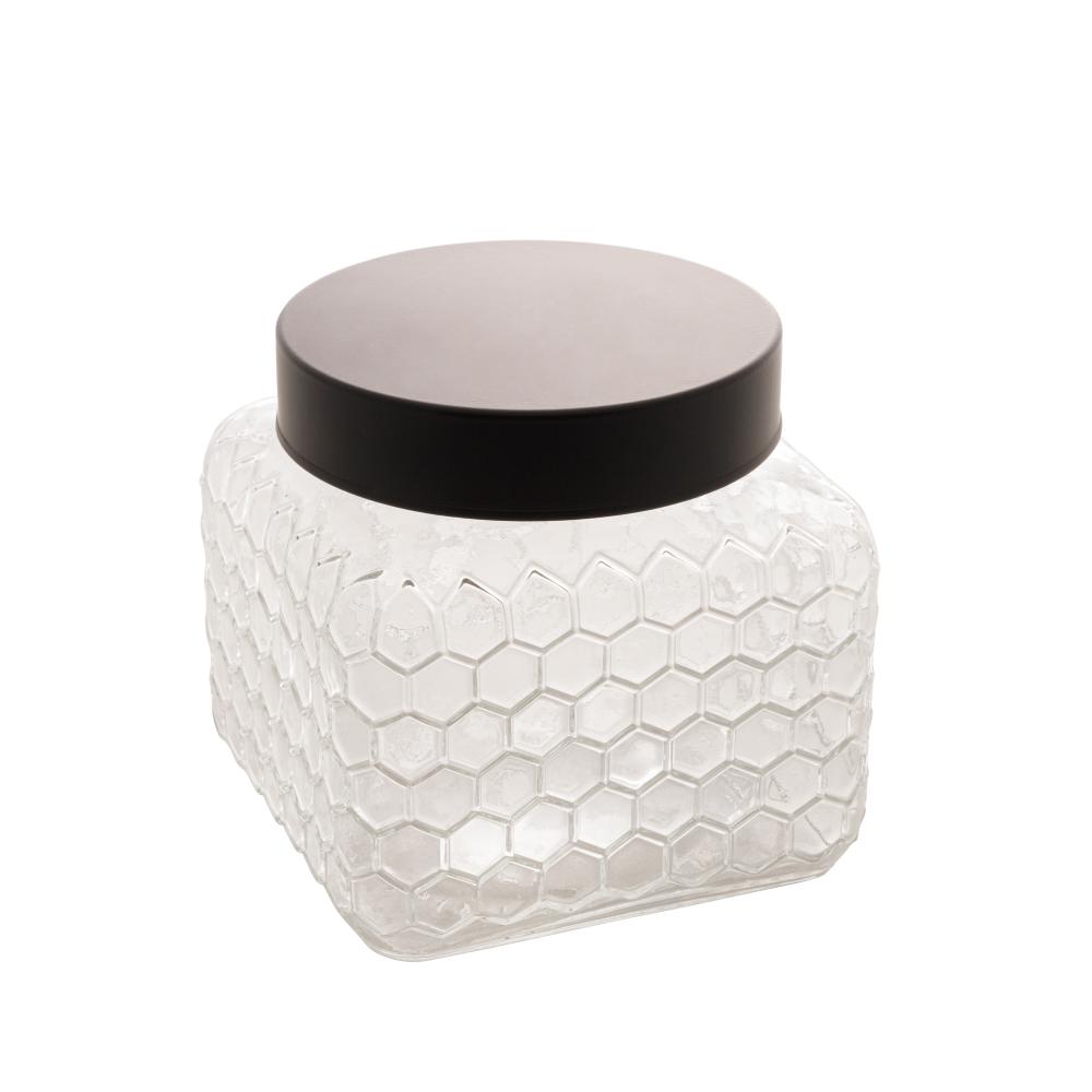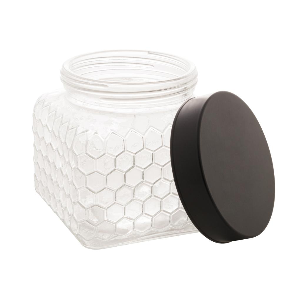 Pote de Vidro com Tampa Preta Colméia 13x13cm 1,3L
