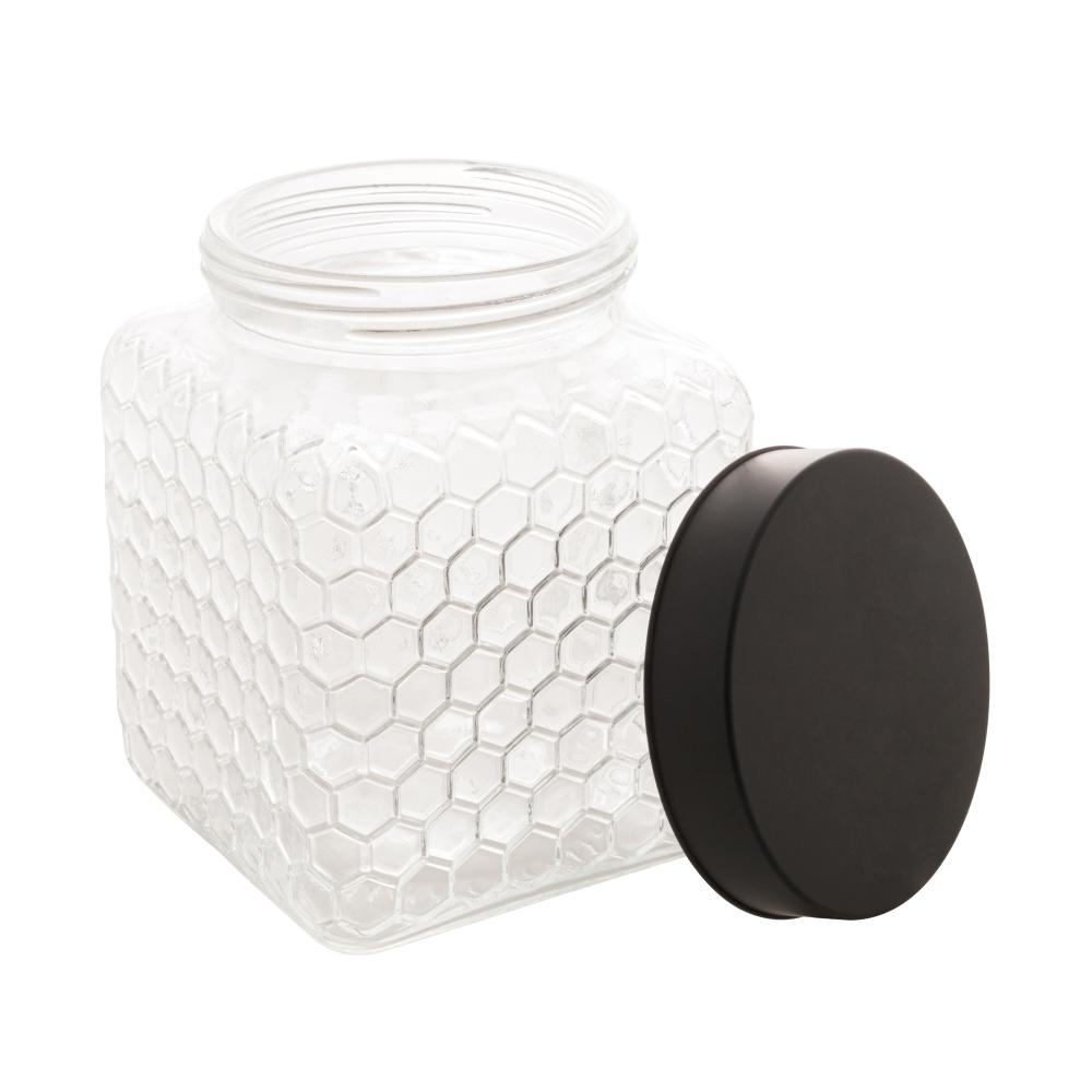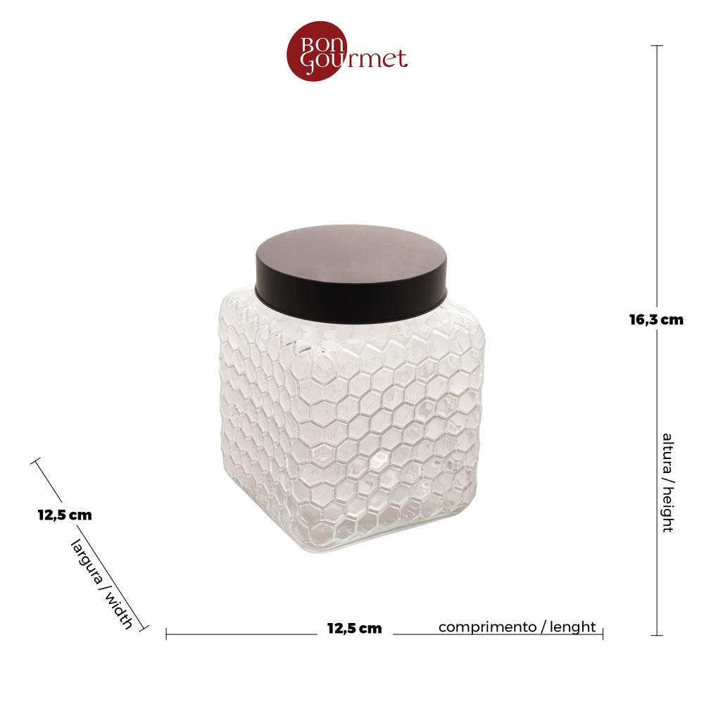 Pote de Vidro com Tampa Preta Colméia 13x16cm 1,8L