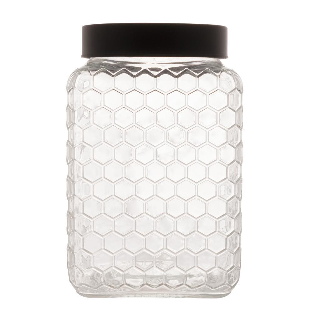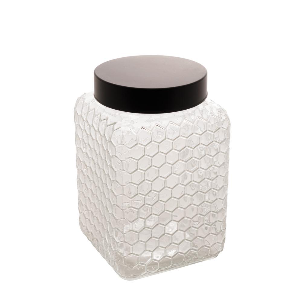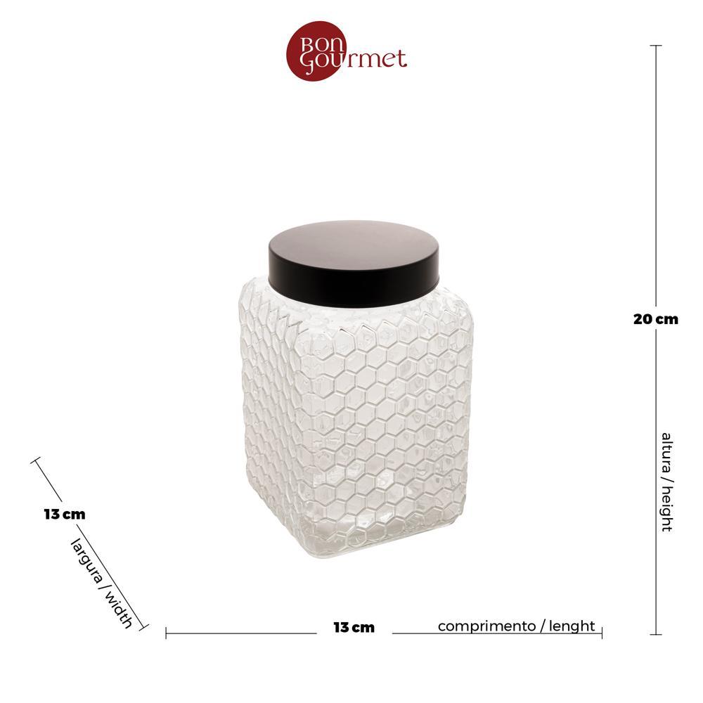 Pote de Vidro com Tampa Preta Colméia 13x20cm 2,4L
