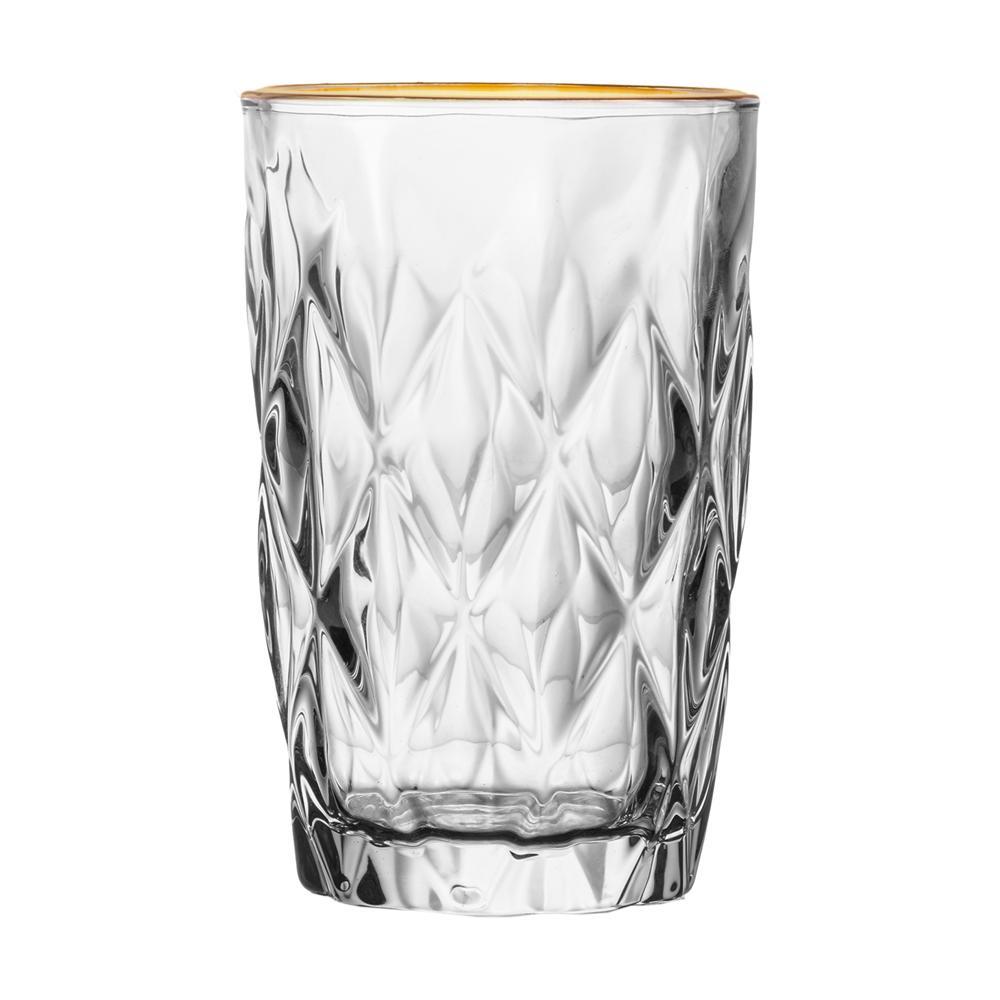 Copo Alto Com Fio De Ouro Diamond 390Ml Vidro