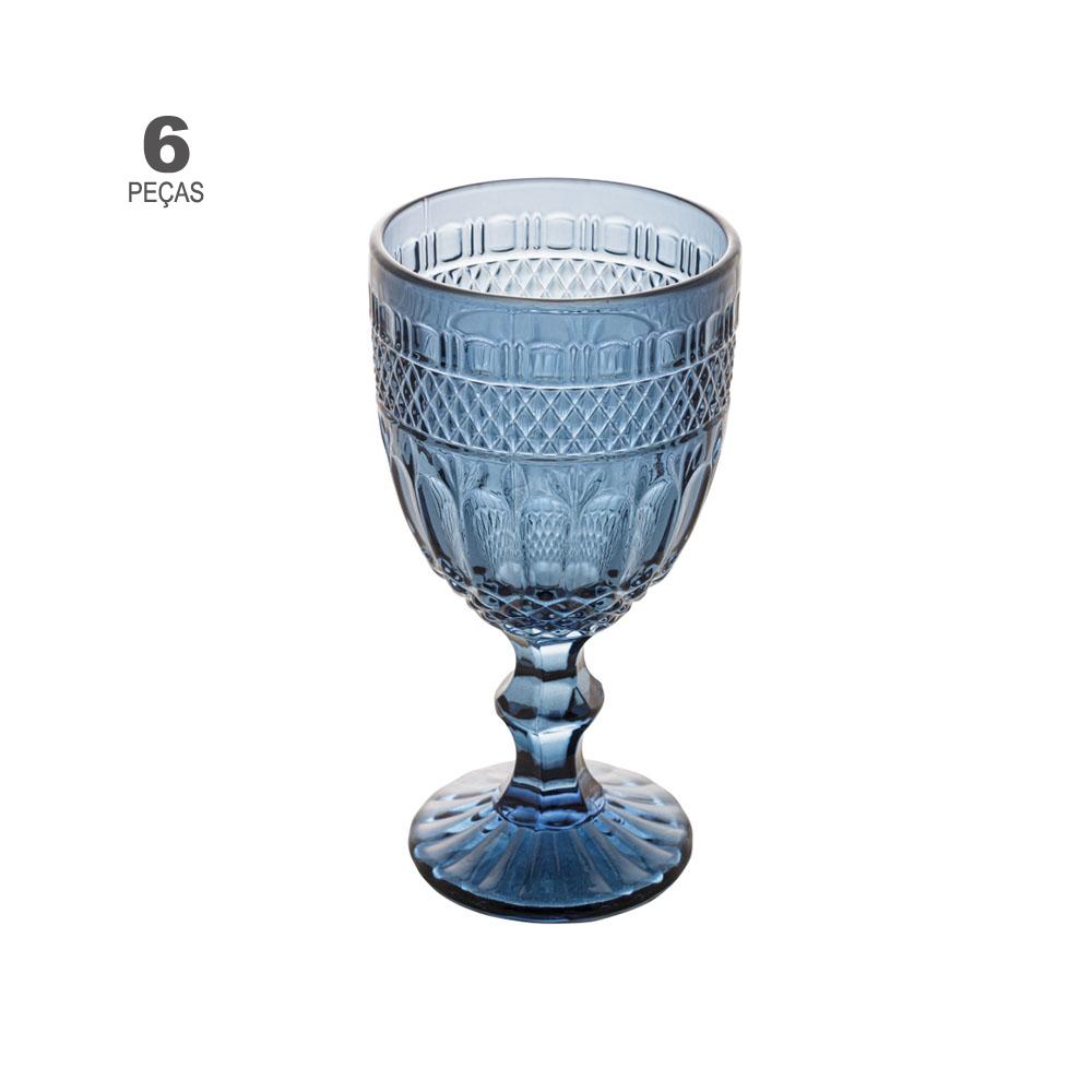 Jogo de 6 Taças Wolff Brand de Vidro Azul Escuro 345ml