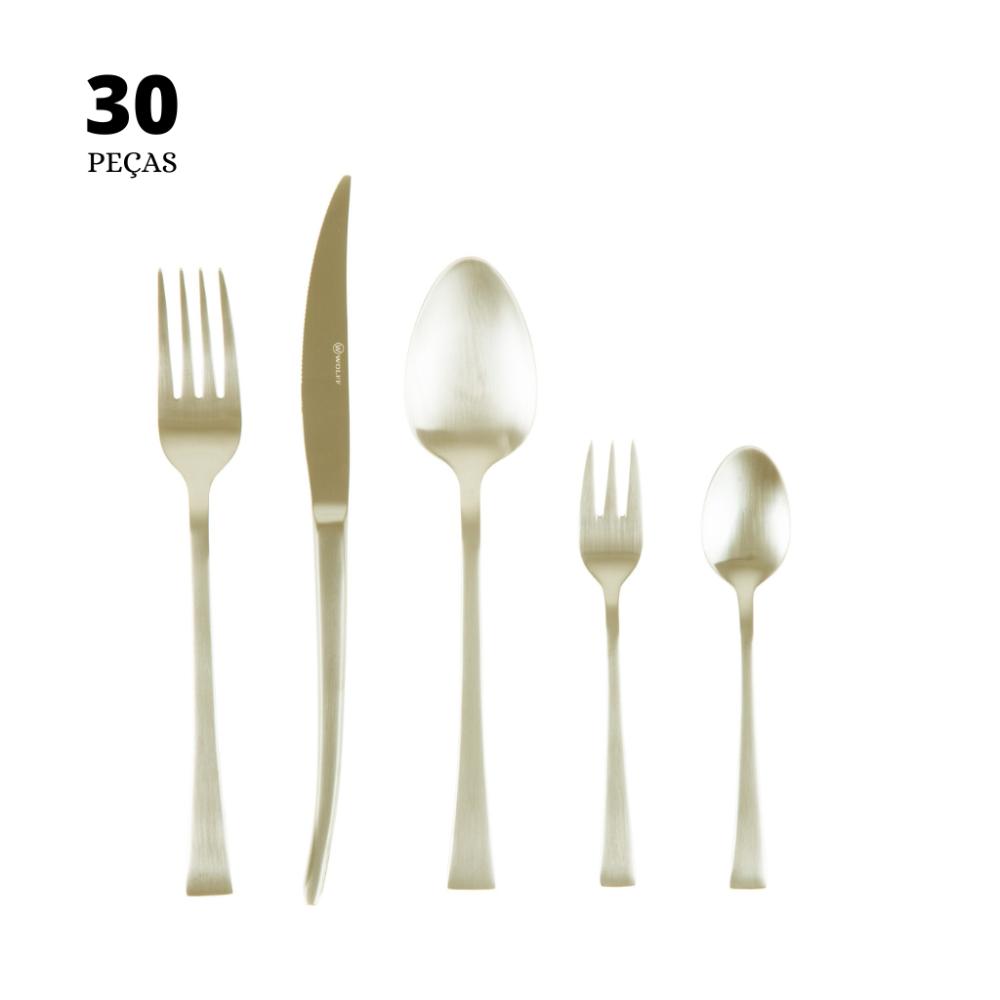 Faqueiro 30 Peças Wolff Berna de Aço Inox Champanhe Fosco