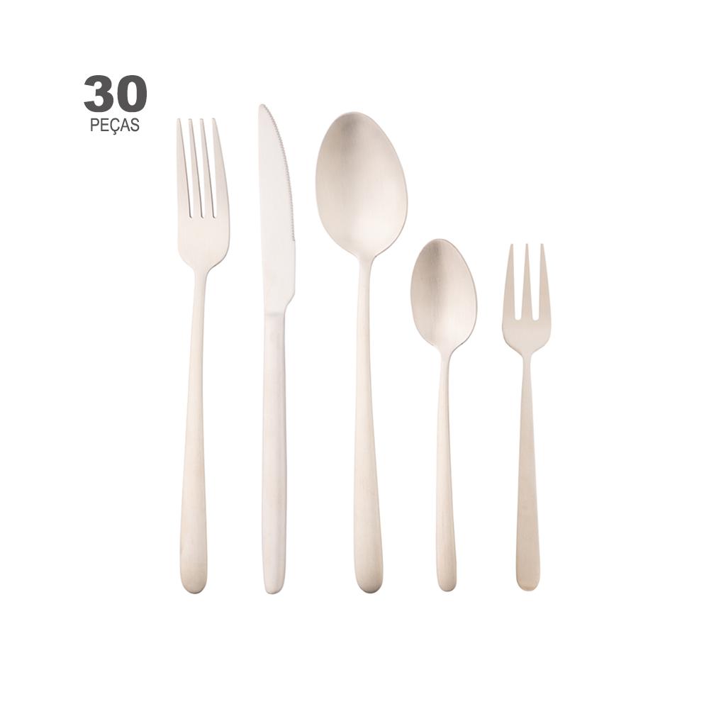 Faqueiro 30 Peças Wolff Viena de Aço Inox Champanhe Fosco