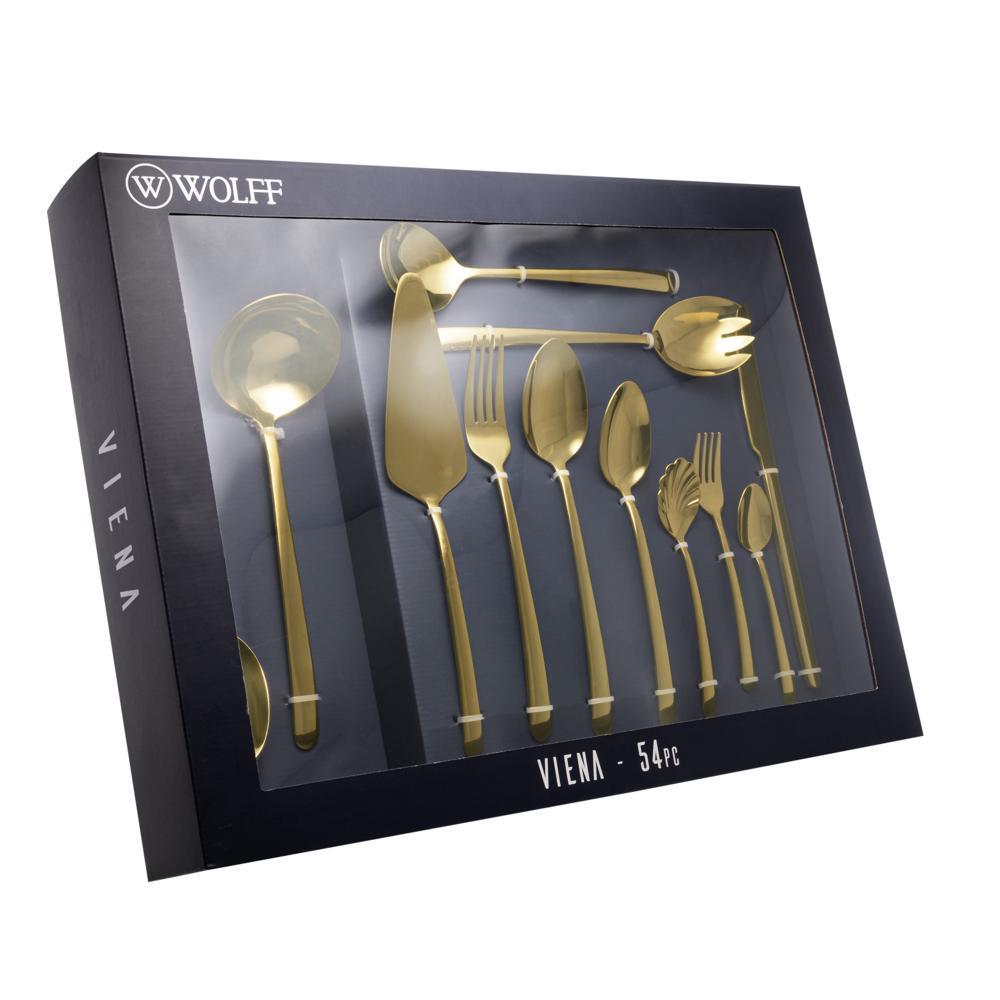 Faqueiro 54 Peças de Aço Inox Viena Dourado - Wolff