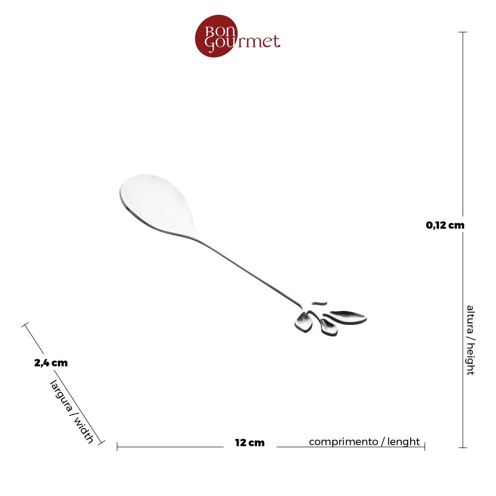 Conjunto de 4 Colheres de Chá Wolff Leaves Prata de Aço Inox