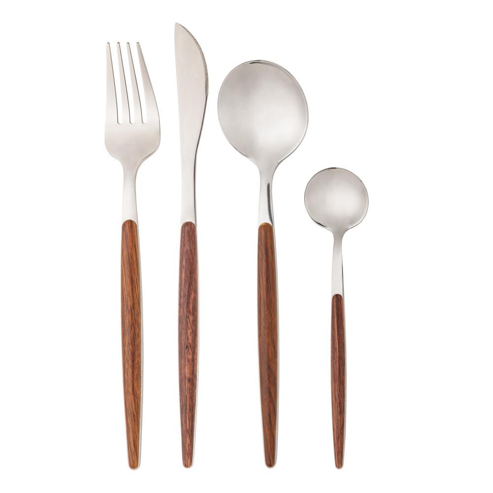 Faqueiro 24 Pçs Aço Inox e Cabo Estampa de Madeira Organic