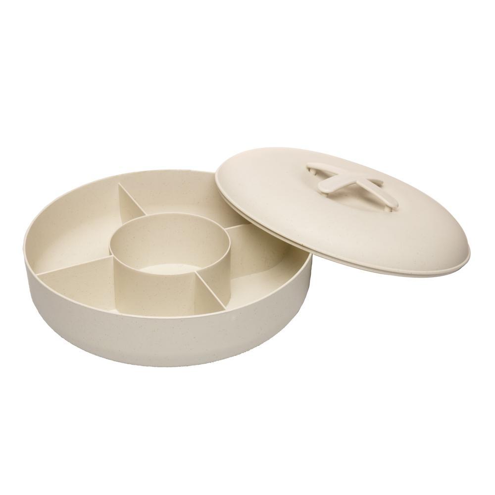 Petisqueira Redonda com Tampa e Divisórias Bege - Lyor