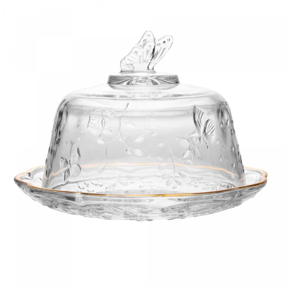 Queijeira c/Tampa New Butterfly Fio de Ouro 19,5cm x 12,5cm