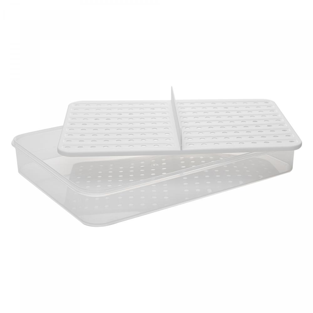 Porta Frios com Divisória e Tampa Hermética - LyorO Porta Frios com Divisória e Tampa Hermética da Lyor é a escolha perfeita para quem busca praticidade e organização na hora de armazenar seus alimentos. Com excelentes dimensões de 26,5cm x 19cm x 4cm, ele foi projetado para manter suas delícias sempre frescas e bem conservadas na geladeira. Seu design moderno e funcional não só agrega estilo à sua cozinha, mas também facilita o dia a dia.Com uma divisória inteligente, este porta frios permite separar frios e outros ingredientes, evitando misturas indesejadas e preservando o sabor. A tampa hermética fecha de forma segura, garantindo que os alimentos se mantenham protegidos e com frescor prolongado.Principais Características: Design Moderno: Ideal para qualquer cozinha, combinando estilo e funcionalidade. Divisória Inclusa: Permite organizar frios e outros alimentos de forma prática. Tampa Hermética: Fecha de maneira segura, mantendo a frescura e evitando odores. Material Durável: Feito de Plástico resistente, fácil de limpar e manter. Cuidados Simples: Lave com detergente neutro e uma esponja macia, secando imediatamente.Especificações Técnicas: Dimensões: 26,5cm (C) x 19cm (L) x 4cm (A) Peso: Leve e fácil de manusear. Conteúdo da Embalagem: 1 Porta Frios com Divisória e TampaO Porta Frios da Lyor é a solução ideal para quem deseja conservar seus alimentos com praticidade e elegância. Aproveite a organização e frescor que ele proporciona em sua cozinha!Mantenha seus alimentos frescos e organizados com o Porta Frios da Lyor! Com divisória prática e tampa hermética, ele é ideal para evitar misturas e odores. Com design moderno, é perfeito para sua cozinha. Adquira já o seu e transforme a conservação dos alimentos!