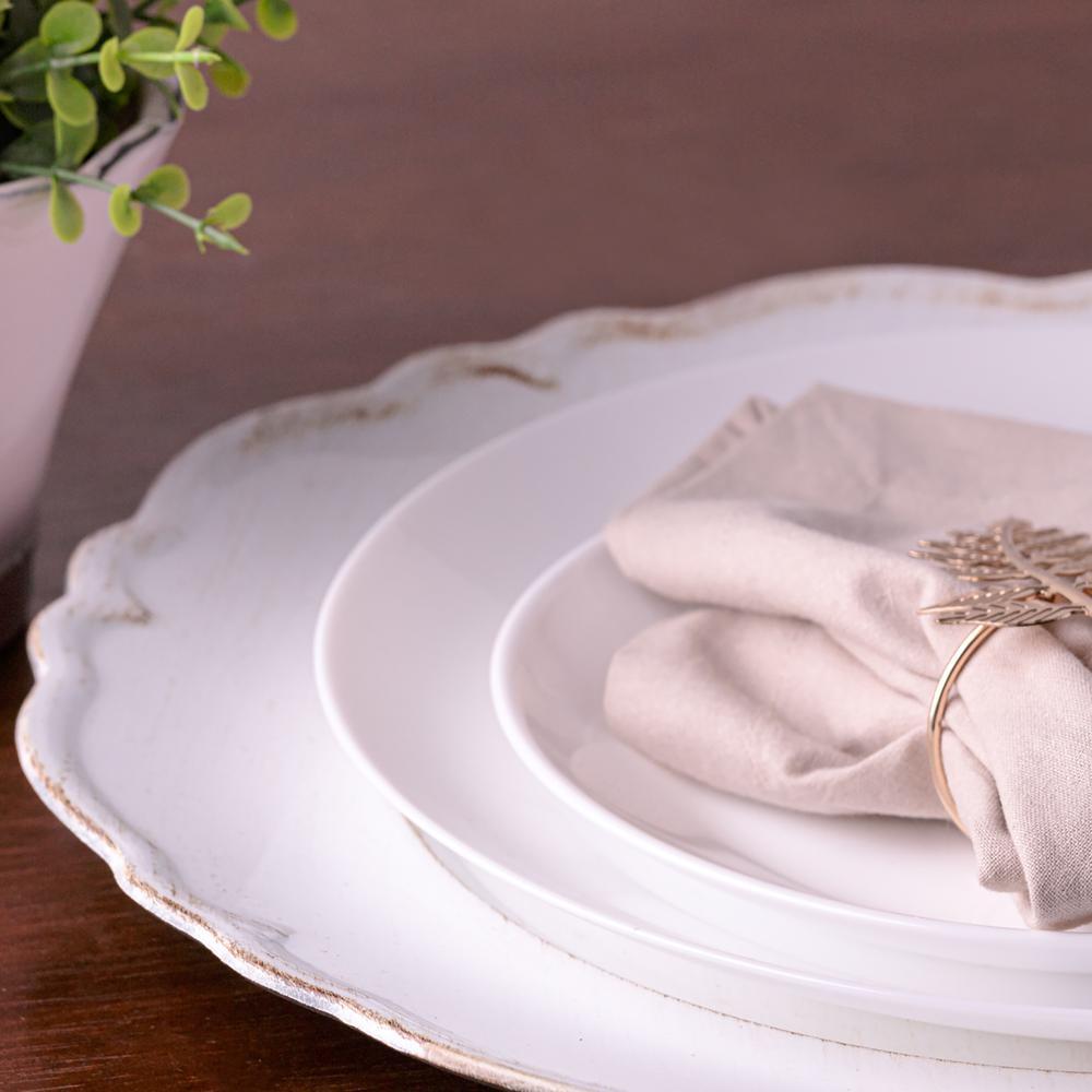 Sousplat Patinado de Plástico Moon Branco 25cm - Lyor