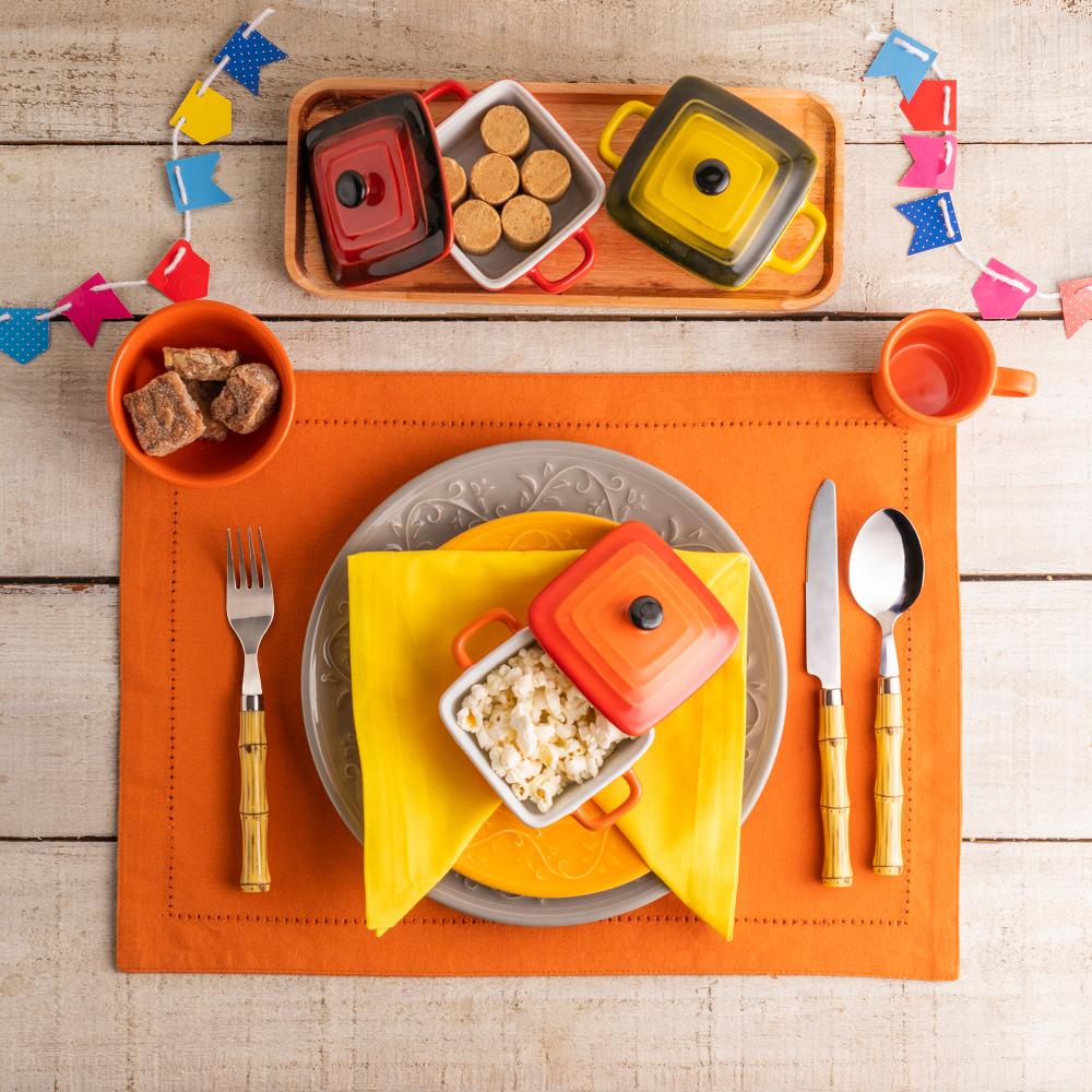 Jogo de 4 Mini Panelas quadradas Wolff de Porcelana Coloridas 12cm 150ml