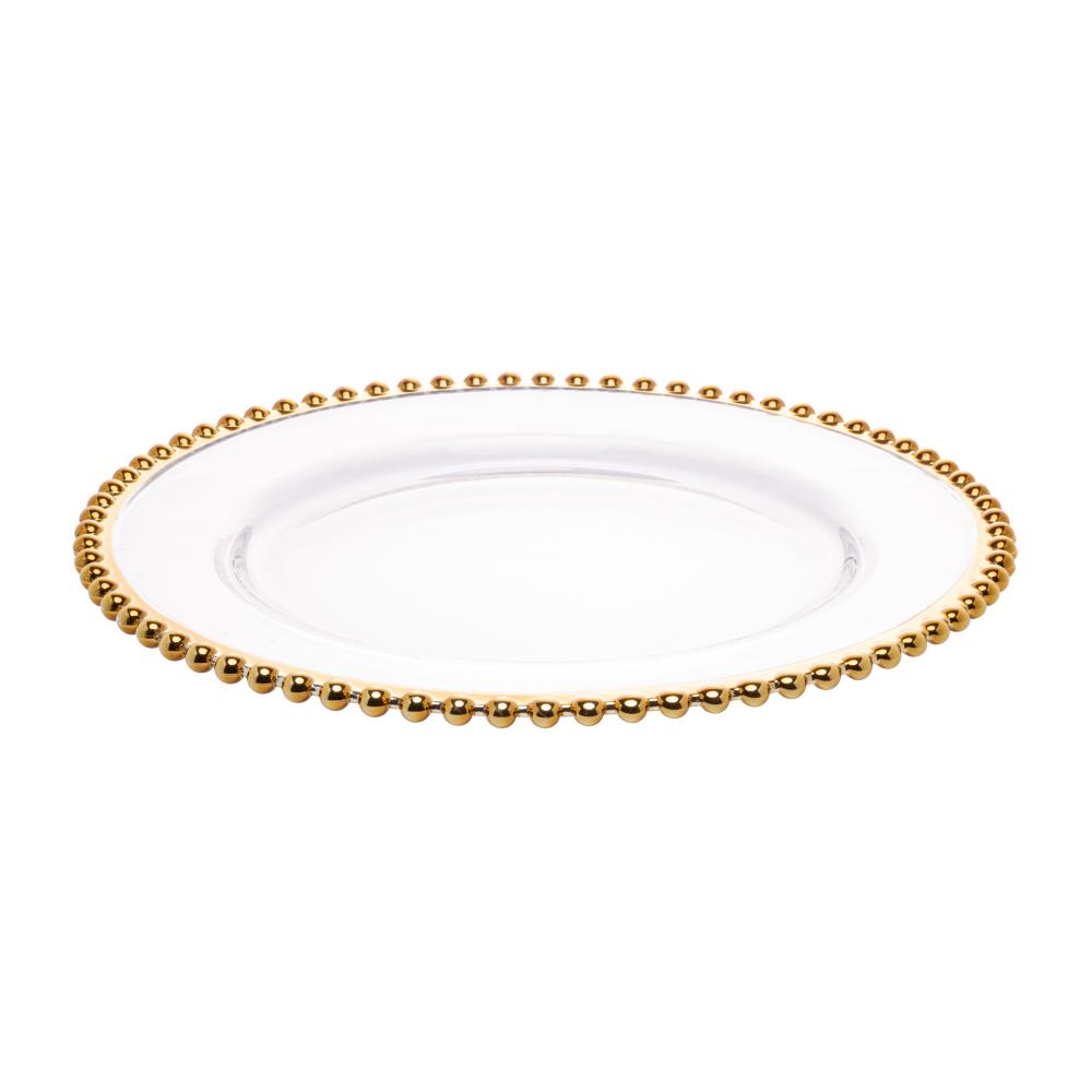 Símbolo de luxo e elegância, a Wolff foi fundada em 1894 na Alemanha. O portfólio divide-se em itens de porcelana e cristal importados com exclusividade e em itens de prata e inox produzidos na fábrica nacional, com mão de obra altamente treinada e especializada.Sousplat Wolff Pearl de Cristal 32cmO sousplats de cristal transparente com borda dourada PEARL WOLFF possui lapidação em bolinhas na borda, inspirada na beleza e no brilho único das pérolas. É ideal para proporcionar um ambiente com mais glamour e sofisticação a mesa, além de oferecer proteção contra resíduos de alimentos que possam cair no colo durante as refeições. WOLFF, há mais de um século servindo bem.Material: CRISTALCor : DOURADOMedidas: Largura: 31,6cm x Altura: 2,5cm x Comprimento: 31,6cm.Peso do Produto (kg): 1.58Garantia: 90 dias