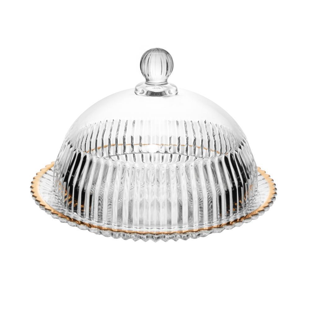 Queijeira De Cristal Com Tampa Fio De Ouro 20cm x 13,5Cm