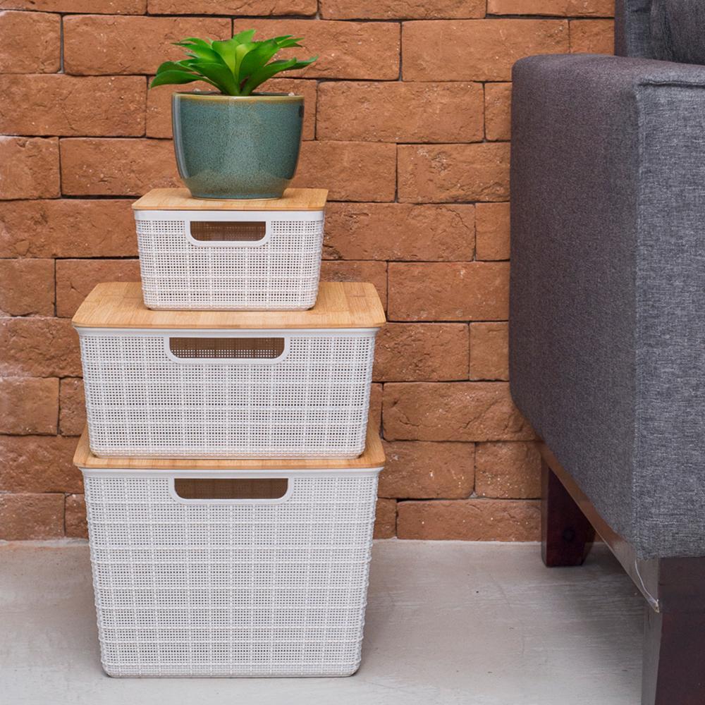 Caixa Organizadora Com Tampa De Bambu 24x10 - Oikos