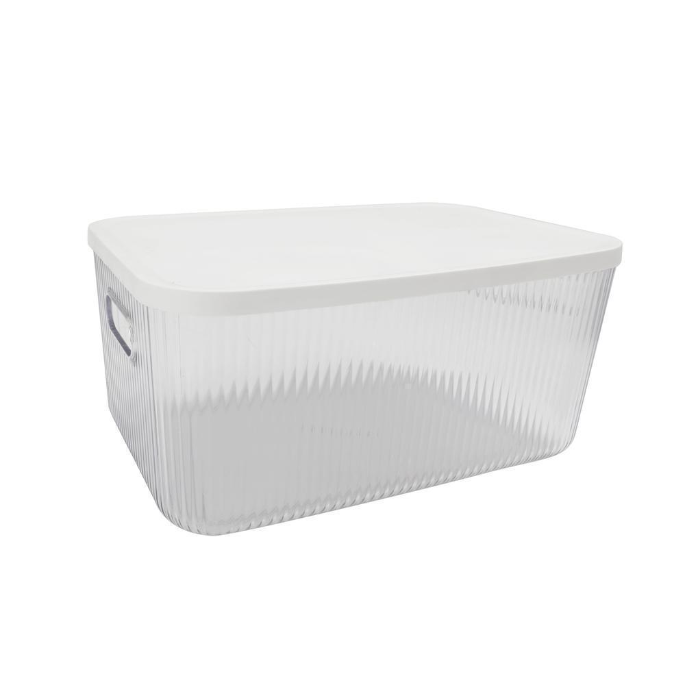 Caixa Organizadora Canelada Transparente Com Tampa 5,5L Alta