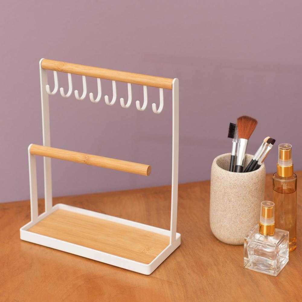 O Porta-Joias de Metal e Bambu da Oikos é muito mais do que um simples organizador, é uma peça de decoração elegante e funcional que adiciona um toque de sofisticação ao seu ambiente. Com dimensões de 27 x 17 x 10 cm, este porta-joias combina a resistência do metal com a beleza natural do bambu, resultando em uma combinação harmoniosa e durável.Características: Design Moderno e Elegante: Com linhas suaves e acabamento refinado, este porta-joias se destaca como uma peça única em qualquer espaço. Organização Prática: Possui compartimentos internos bem distribuídos para acomodar diferentes tipos de joias, mantendo tudo organizado e de fácil acesso. Materiais de Qualidade: Feito com 90% vime e 10% metal, além de 70% ferro e 30% bambu, garantindo durabilidade e resistência ao produto. Tamanho Compacto: Com medidas de 27 x 17 x 10 cm, este porta-joias é ideal para ser colocado em cômodas, penteadeiras ou qualquer outro móvel sem ocupar muito espaço.O Porta-Joias de Metal e Bambu da Oikos é a escolha perfeita para quem busca praticidade, elegância e qualidade em um mesmo produto. Organize suas joias com estilo e sofisticação, adicionando um toque especial à sua rotina diária. A união do metal e do bambu traz um equilíbrio entre a modernidade e a natureza, proporcionando um visual único e atemporal que combinará perfeitamente com a sua personalidade e seu espaço. Recomendado para quem valoriza a organização e o design em cada detalhe.O Porta-Joias de Metal e Bambu da Oikos combina elegância e praticidade em um design moderno e compacto. Feito com materiais de alta qualidade, este porta-joias é ideal para organizar suas joias com estilo e sofisticação. Adicione um toque de sofisticação ao seu ambiente com esta peça única!