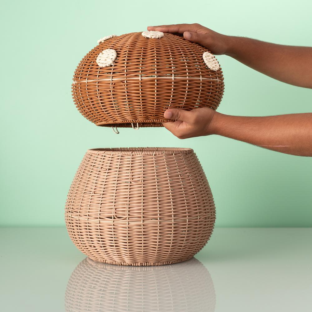 Cesto Com Tampa Cogumelo 28Cm De Corda - Oikos