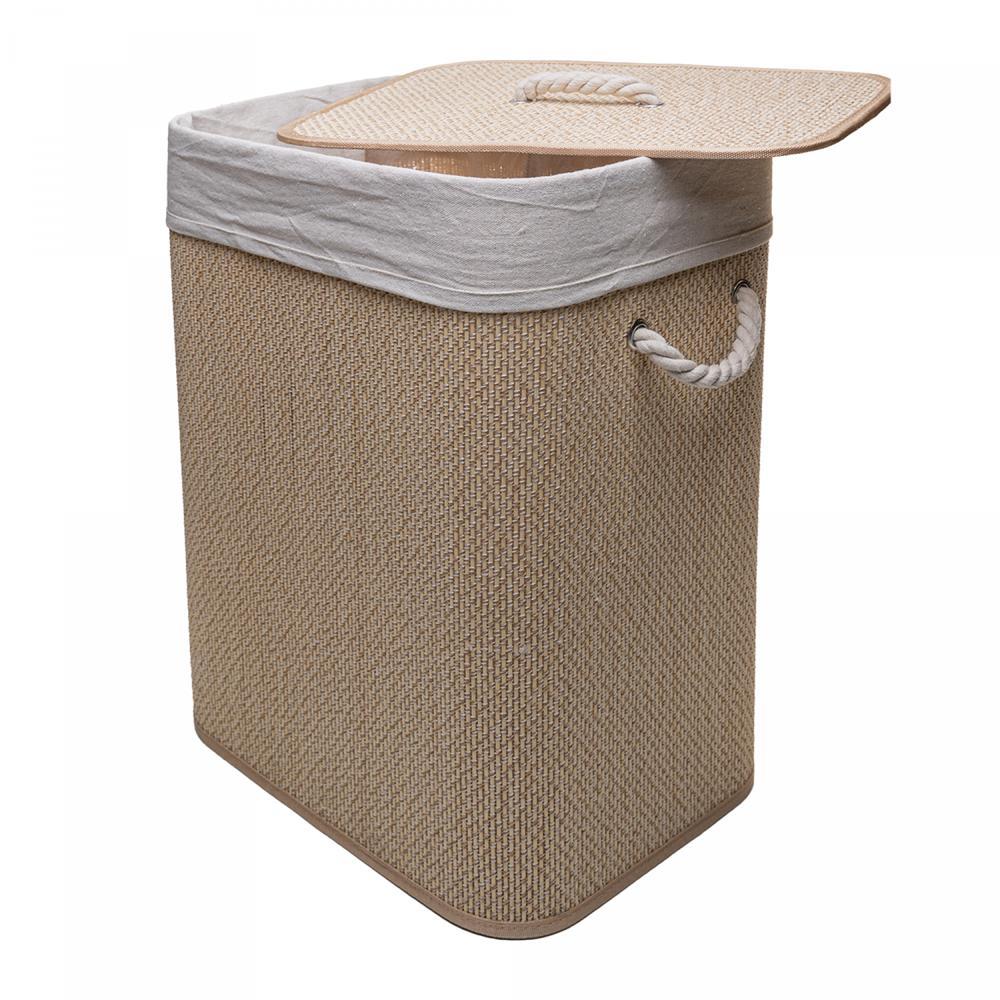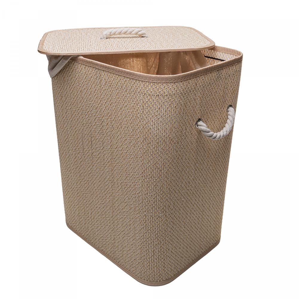 Cesto para Roupas Dobrável com Forro em Tecido em Bambu