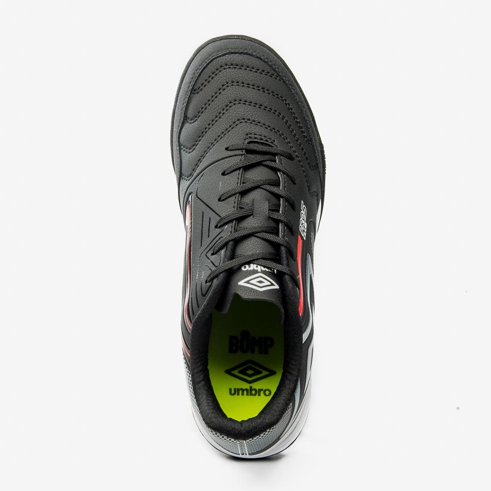Seja o astro dos jogos com a Chuteira Society Umbro Pro 5 Bump Club: a Pro 5 Club que você já conhece, agora com tecnologia BUMP na palmilha interna para maior amortecimento.O cabedal é assimétrico, construído em material laminado com textura emborrachada. Possui detalhes em alta-frequência combinados com serigrafia de três cores e detalhes em verniz com costura frontal para reforço.Solado de society HG de entressola de EVA de ponta-a-ponta e soleta em TPU, além de costura de reforço frontal.