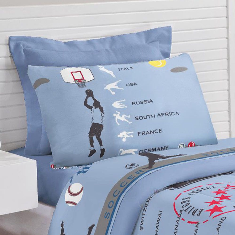 Kit Edredom Infantil Fenômeno Esportes + Jogo De Lençol 5 Peças - Azul - 100% Algodão