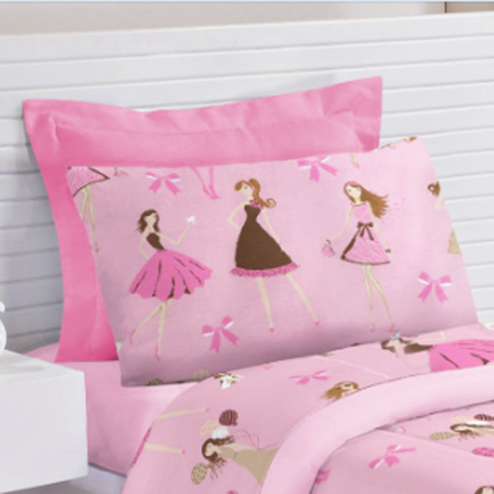 Kit Edredom Infantil Sofie Marrie e Fifi + Jogo De Lençol 5 Peças - Rosa - 100% Algodão