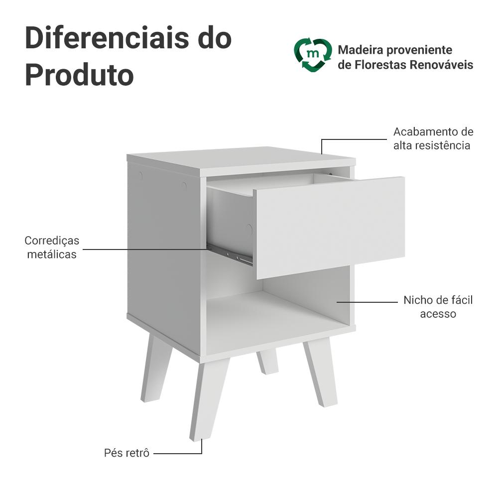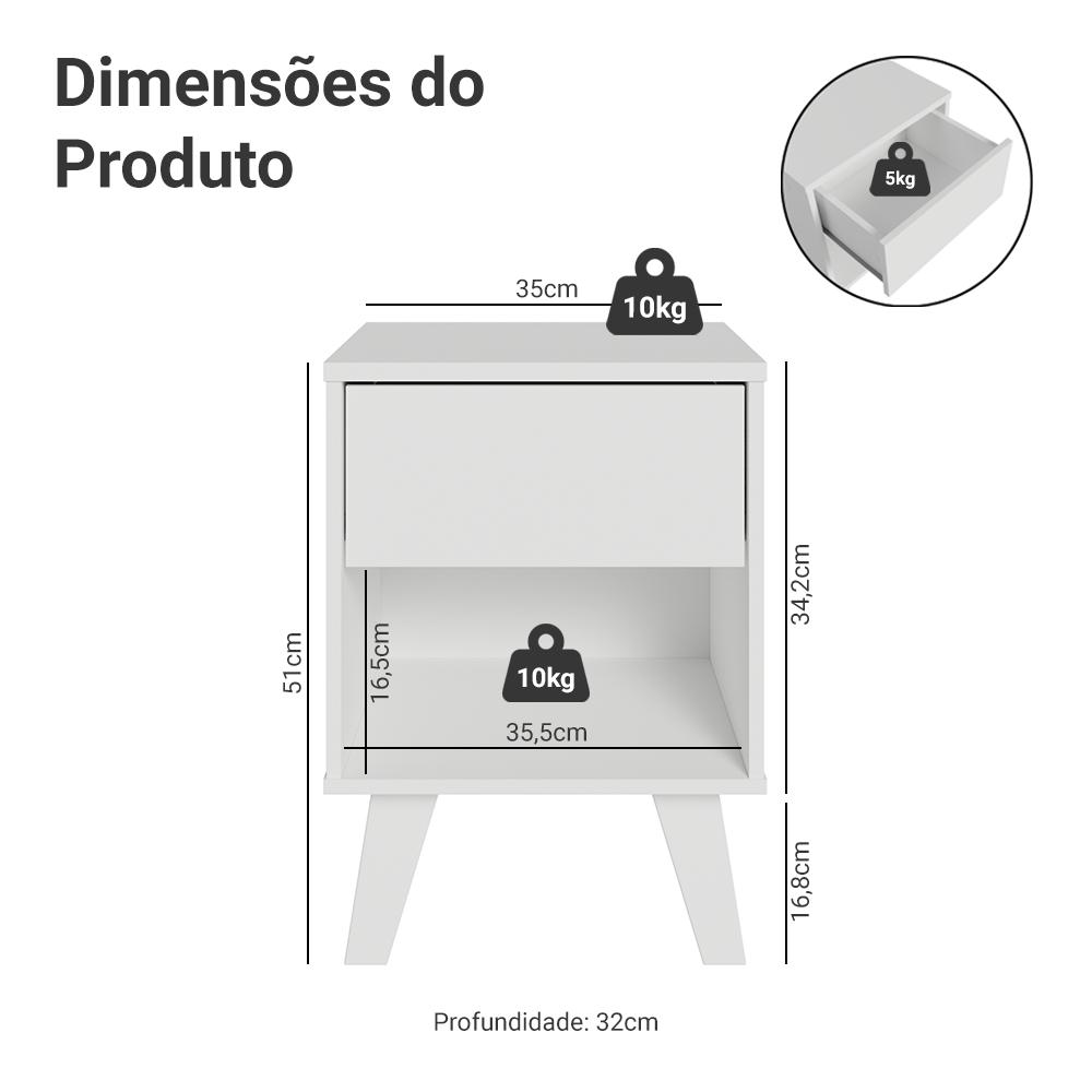 Mesa de Cabeceira Branca com 1 Gaveta 3235 Madesa