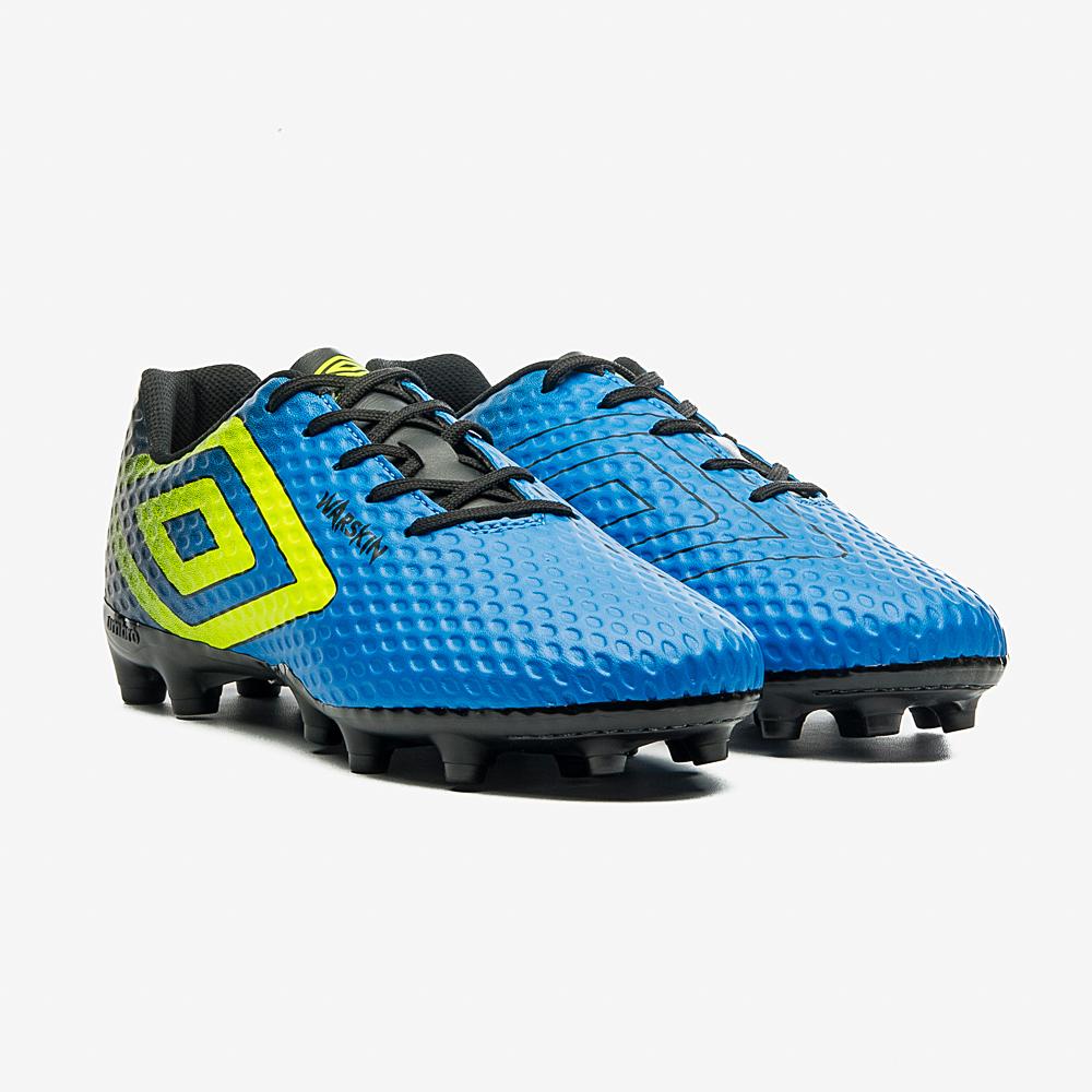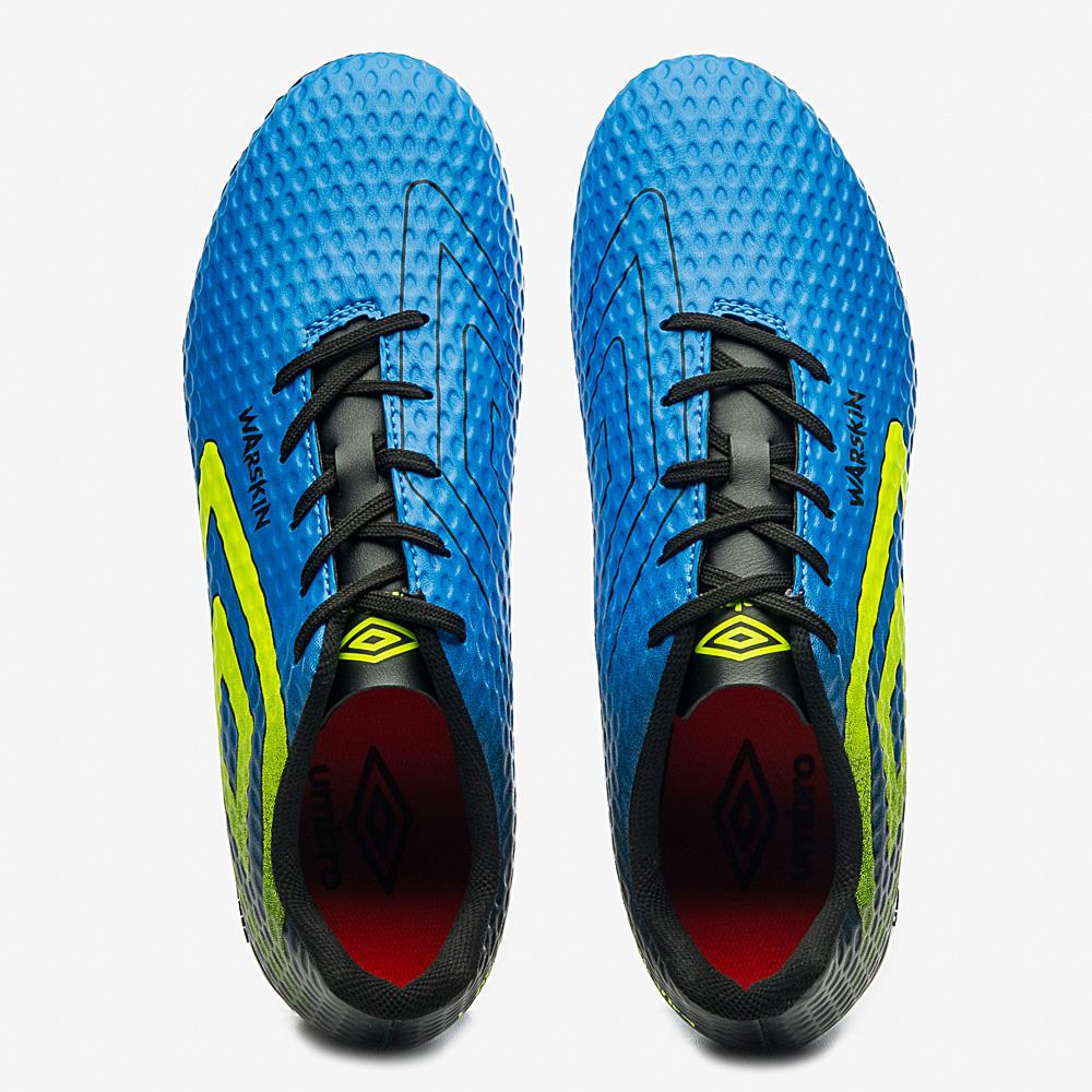 A Chuteira Campo Umbro Warskin é ideal para os jogadores que procuram domínio e controle dentro das quatro linhas. Inovador e funcional, o cabedal traz grafismo em degradê e textura integral que utiliza um novo tipo de cilindro para proporcionar um melhor grip no momento do chute.Cabedal assimétrico construído em material laminado com frequência em rolo aplicada em todo a extensão, que oferece um grip superior quando ocorre o contato com a bola. Possui serigrafia em duas cores com efeito degradê, assinatura Warskin aplicada próximo ao atacador, Diamante Umbro em destaque na lateral e palmilha macia em EVA com tecido de poliéster forrado. O solado de campo FG de 14 travas, com costura de reforço na parte frontal, é composto por PVC.