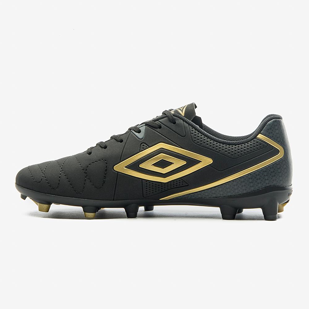 A Chuteira Campo Attak Eternal traz renovação e modernidade ao clássico modelo da Umbro sem perder sua grandiosa essência.Seu cabedal é construído em material laminado com aplique de alta-frequência, detalhe diferenciado no Diamante Umbro e costura programada na parte frontal, preservando esse detalhe clássico e combinando com serigrafia e detalhe de textura gráfica.Solado de campo FG de 10 travas + 2 travas centrais de tração em TPU com travas bicolores posicionadas.