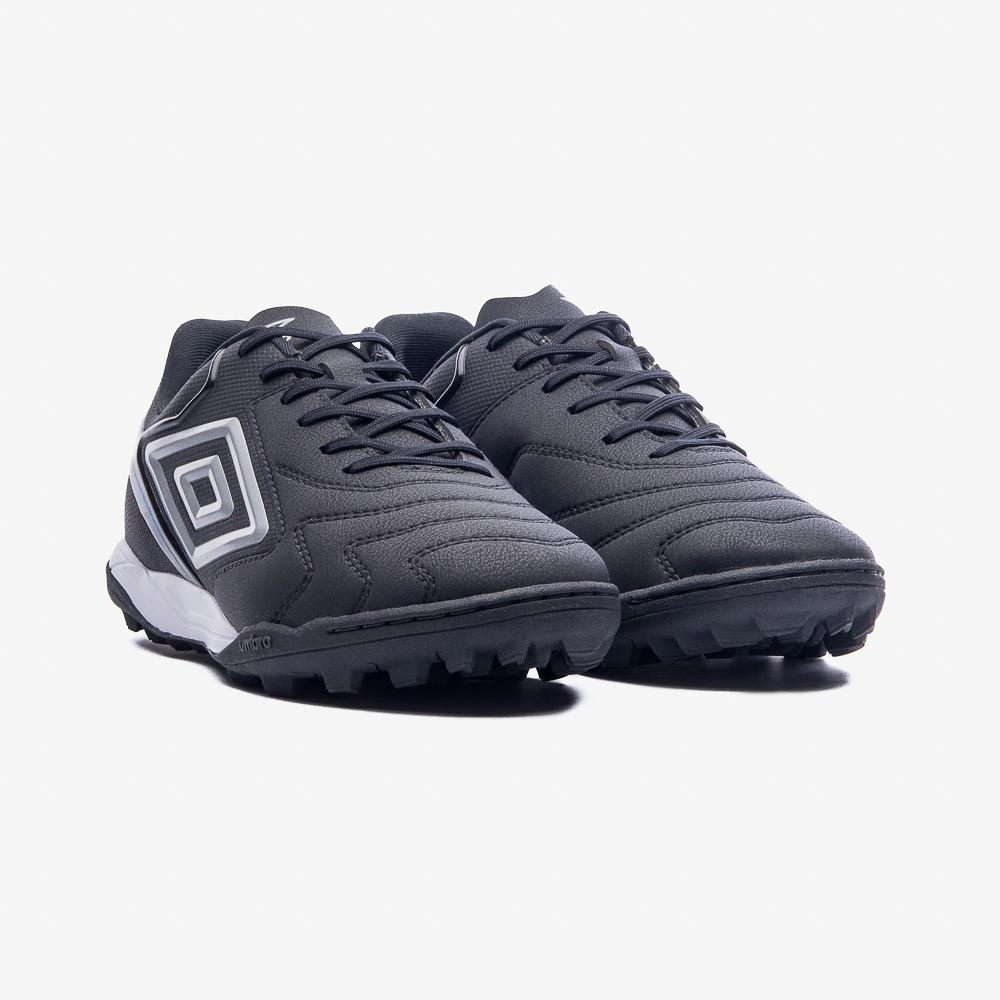 Chuteira Society Umbro Adamant Master Class ClubA Chuteira Society Adamant Master Class Club da Umbro combina design clássico e cores contrastantes, ideal para jogadores que buscam controle de jogo e velocidade. Com cabedal assimétrico em material com toque emborrachado, o modelo conta com costuras de reforço, linhas de flexão, e solado Pro 5 HG com entressola em EVA e sola em TPU.Atributos do Produto: Marca: Umbro Modelo: U01FB00255 Cor: PRETO, CINZA, CLOISONNE Cor Única: PRETOPor que escolher a Chuteira Society Umbro Adamant Master Class Club?Se você procura por uma chuteira que ofereça conforto, durabilidade e desempenho superior, a Adamant Master Class Club da Umbro é a escolha certa para você. Com seu design inovador e tecnologias avançadas, essa chuteira vai elevar o seu jogo a um novo patamar.Design Clássico e Cores ContrastantesO design clássico da chuteira, aliado às cores contrastantes de preto, cinza e cloisonne, proporcionam um visual moderno e estiloso, garantindo que você se destaque dentro de campo.Controle de Jogo e VelocidadeO cabedal assimétrico em material emborrachado oferece maior controle de bola e precisão nos movimentos, enquanto as linhas de flexão permitem uma maior liberdade de movimento, ideal para jogadores que buscam velocidade e agilidade.Solado de Alta PerformanceO solado Pro 5 HG, com entressola em EVA e sola em TPU, proporciona tração e estabilidade em diferentes tipos de terreno, garantindo que você possa jogar com confiança em qualquer situação.Leveza e ConfortoA Adamant Master Class Club é leve e confortável, permitindo que você se concentre totalmente no jogo, sem se preocupar com desconfortos nos pés. Sinta-se ágil e preparado para enfrentar qualquer desafio.Garanta já a sua Chuteira Society Umbro Adamant Master Class Club e domine o campo com estilo e performance!