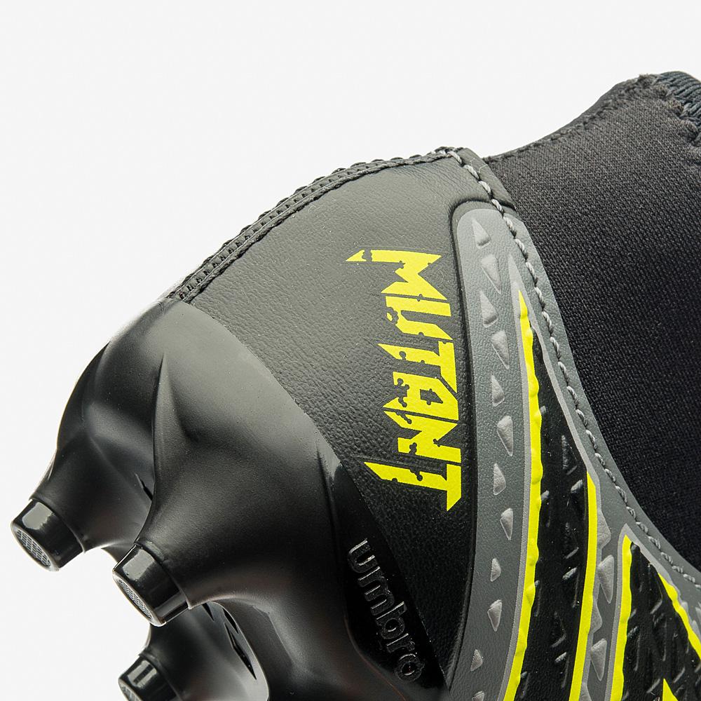 Com um design ousado e irreverente, a Chuteira Campo Umbro Mutant Jr exibe arte gráfica personalizada com jogo de cores contrastantes e tom sobre tom. Indicado para os jogadores infantis e juvenis, o modelo oferece calce em meia de tecido com elastano para um ajuste confortável.Cabedal assimétrico slip-on confeccionado em meia de tecido com elastano na base e material laminado com alta frequência. Possui fechamento em cadarço para um melhor ajuste no pé, maxi Diamante Umbro Outline na lateral com assinatura do modelo e palmilha interna em EVA forrado. O solado de campo FG de 14 travas é construído em PVC com design minimalista.