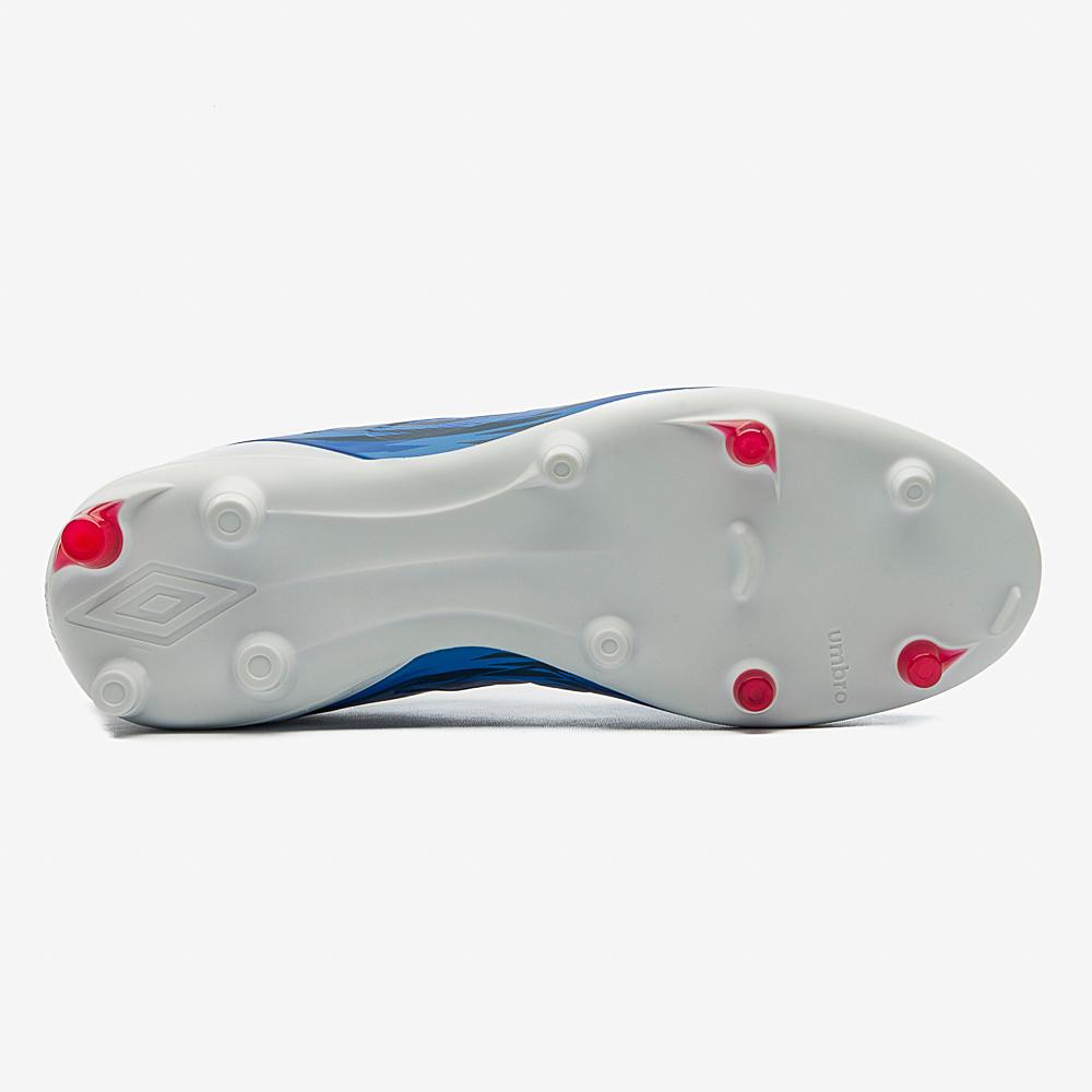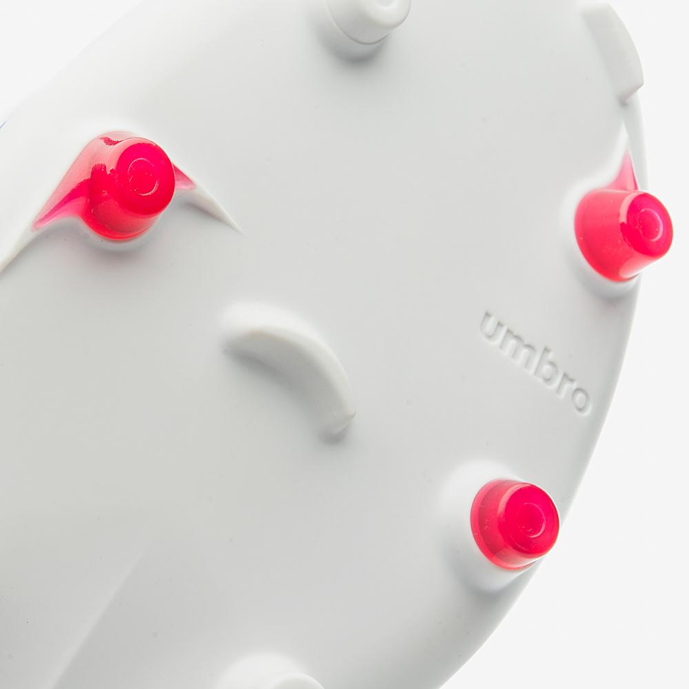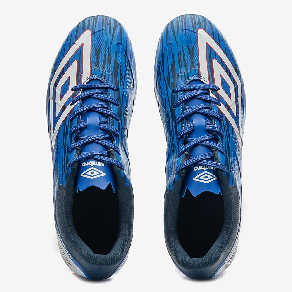 A Chuteira Campo Umbro Ultimate foi desenvolvida com inspiração nas últimas tendências do cenário futebolístico, exibindo um visual arrojado que se destaca pelas artes gráficas exclusivas com cores vivas e modernas. Indicada para jogadores iniciantes que procuram por uma chuteira estilosa para dominar o jogo em campo.Cabedal assimétrico construído em material laminado emborrachado liso, com toque macio, e detalhes em janelas de alta frequência. Possui forro traseiro em Mesh com acabamento superior luvado, grafismo camuflado geométrico em serigrafia, maxi Diamante Umbro aplicado na região frontal, assinatura do modelo na lateral externa da parte posterior e palmilha interna em EVA conformado para maior conforto. O solado de campo FG de 10 travas, com 2 travas centrais de tração, é composto por TPU com trava bicolores posicionadas.
