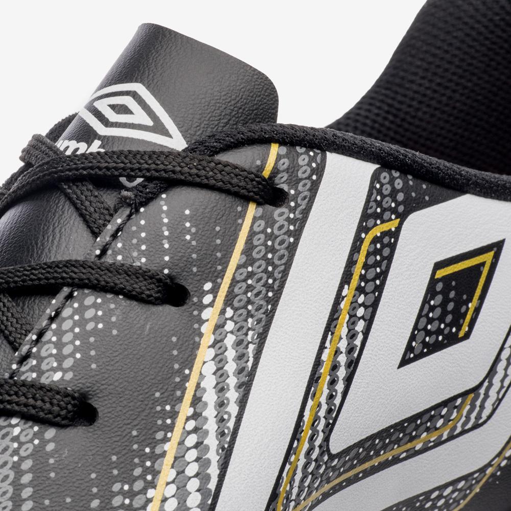 Chuteira Society Umbro Heatmap: Performance e Estilo para IniciantesA Chuteira Society Umbro Heatmap é a escolha perfeita para jogadores iniciantes que desejam unir conforto, estilo e desempenho em campo. Com um design contemporâneo inspirado em um grafismo de mapa de calor, essa chuteira não apenas se destaca visualmente, mas também oferece a tecnologia necessária para aprimorar seu jogo. Conheça todos os detalhes que fazem da Umbro Heatmap uma excelente opção para quem está começando a sua jornada no futebol.Design InovadorCom um visual diferenciado, a Chuteira Umbro Heatmap apresenta um cabedal confeccionado em material laminado, que garante durabilidade e resistência. O grafismo reticulado, juntamente com o icônico Diamante Umbro centralizado e a inscrição HM na parte traseira, traz um toque de modernidade e estilo. As cores disponíveis - preto, branco e dourado - permitem que você escolha a combinação que mais combina com seu estilo pessoal.Conforto em Cada PassoA palmilha interna da Chuteira Umbro Heatmap é feita em EVA e forrada em tecido, proporcionando um conforto excepcional durante os jogos. Essa característica é fundamental para jogadores iniciantes, que precisam de um calçado que não apenas suporte suas movimentações, mas que também mantenha os pés confortáveis ao longo de toda a partida.Desempenho SuperiorO solado de futebol society HG da Chuteira Heatmap é construído em material PVC, equipado com um sistema de travas em barra e chevron. Essa combinação garante uma excelente tração em campos de grama sintética, permitindo que você faça cortes rápidos e mudanças de direção com confiança. Com essa chuteira, você terá a segurança necessária para se destacar em campo.Atributos do Produto Marca: Umbro Modelo: U01FB00329 Cor: Preto, Branco, DouradoPor que Escolher a Chuteira Umbro Heatmap?Se você está começando sua trajetória no futebol e busca uma chuteira que combine estilo, conforto e desempenho, a Chuteira Society Umbro Heatmap é a escolha ideal. Com um design inovador e tecnologia que favorece a performance, você estará pronto para encarar qualquer desafio em campo.Não perca a chance de elevar seu jogo com a Chuteira Society Umbro Heatmap. Adquira já a sua e comece a fazer história em campo!