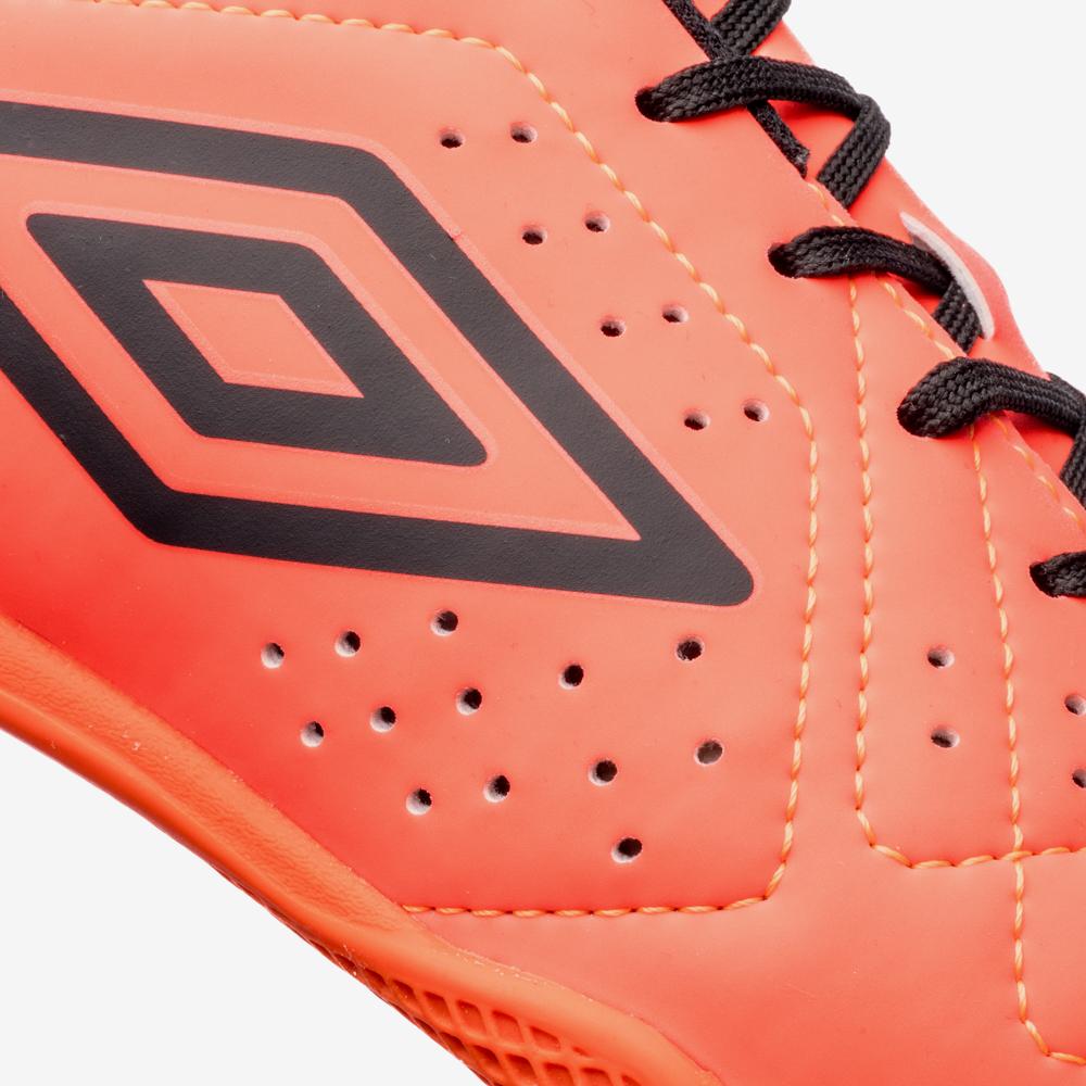 Chuteira Futsal Umbro Neo Striker: Desempenho e Conforto nas QuadrasExperimente o melhor do futsal com a Chuteira Futsal Umbro Neo Striker. Projetada especialmente para as quadras, esta chuteira combina tecnologia, conforto e estilo, garantindo a performance que você precisa para se destacar em cada partida. Com um design moderno e cores vibrantes, como coral, preto e amarelo, a Neo Striker é a escolha perfeita para jogadores que buscam qualidade e desempenho.Conforto e Ajuste FirmeA Chuteira Futsal Umbro Neo Striker é confeccionada em material sintético nobuckado, que proporciona um toque suave e agradável ao contato com o pé. Seu cabedal foi projetado para oferecer um ajuste firme, garantindo que você se sinta seguro durante os movimentos rápidos e explosivos. Isso é essencial para quem busca agilidade e precisão nas jogadas.Solado em Borracha para Máxima TraçãoO solado em borracha da Neo Striker é um dos seus grandes diferenciais. Ele foi desenvolvido para proporcionar uma aderência superior nas quadras, permitindo que você execute dribles desconcertantes e acelere com confiança. Com essa chuteira, você poderá se movimentar rapidamente, mudando de direção sem perder a estabilidade.Estilo e VersatilidadeAlém de toda a tecnologia e conforto, a Chuteira Futsal Umbro Neo Striker se destaca pelo seu design arrojado. As cores vibrantes, como coral, preto e amarelo, fazem dela uma opção que combina com qualquer uniforme, permitindo que você jogue com estilo. Seja em treinos ou competições, essa chuteira é a escolha ideal para quem quer se destacar.