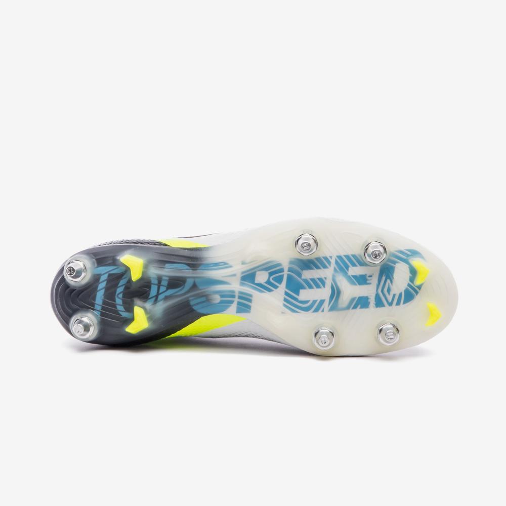 Chuteira Campo Umbro Adamant Top Speed Pro SGDescubra a performance e o conforto da Chuteira Campo Umbro Adamant Top Speed Pro SG. Este modelo foi projetado para atletas que buscam leveza e estabilidade em campo, garantindo um desempenho excepcional durante as partidas. Com tecnologia de ponta e design moderno, a Adamant Top Speed Pro é a escolha perfeita para quem deseja se destacar no futebol.Desempenho SuperiorA Chuteira Adamant Top Speed Pro SG é ideal para jogadores que precisam de agilidade e precisão. Seu cabedal, composto por uma combinação de knit e TPU, oferece uma flexibilidade única, permitindo movimentos rápidos e naturais. A tecnologia Diamond Grip proporciona um controle superior nos passes e chutes, garantindo que cada toque na bola seja preciso e eficaz.Conforto e TraçãoO solado de campo SG é feito em Pebax translúcido, que não apenas aumenta a durabilidade da chuteira, mas também contribui para a leveza do modelo. Com 13 travas mistas (cônicas e setas), sendo 6 removíveis compostas por alumínio e as demais com ponteiras em TPU, a Adamant Top Speed Pro oferece o equilíbrio perfeito entre conforto e tração em terrenos macios. Isso significa que você pode se concentrar no jogo, sem se preocupar com a aderência ao solo.Por que Escolher a Chuteira Adamant Top Speed Pro SG?Com um design que combina estilo e funcionalidade, a Chuteira Campo Umbro Adamant Top Speed Pro SG é a escolha ideal para jogadores que buscam não apenas desempenho, mas também conforto e durabilidade. Seu visual moderno e suas cores vibrantes (branco, preto e limão) garantem que você se destaque em campo, enquanto a tecnologia avançada assegura que você jogue no seu melhor.