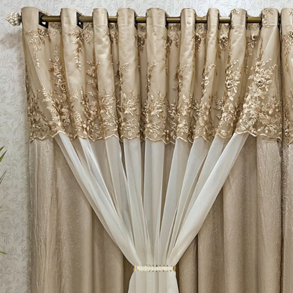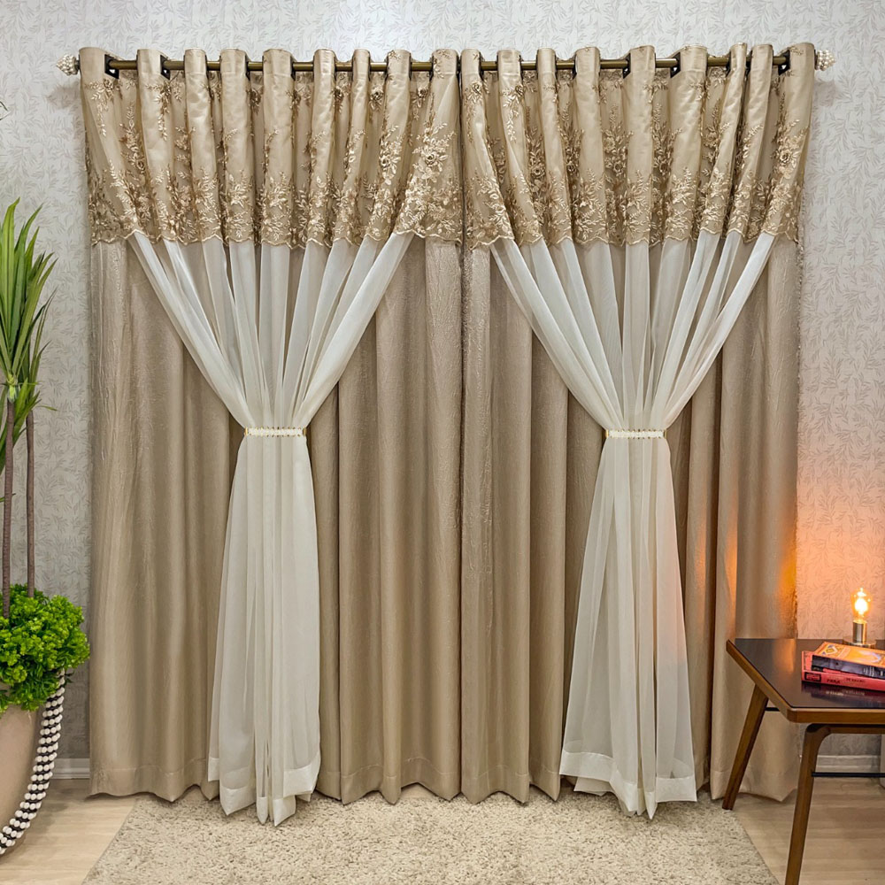 Cortina Nobreza Luxo para Varão Tecido Seda Amassada e Voal 2,00 x 1,70 Metros - Bronze
