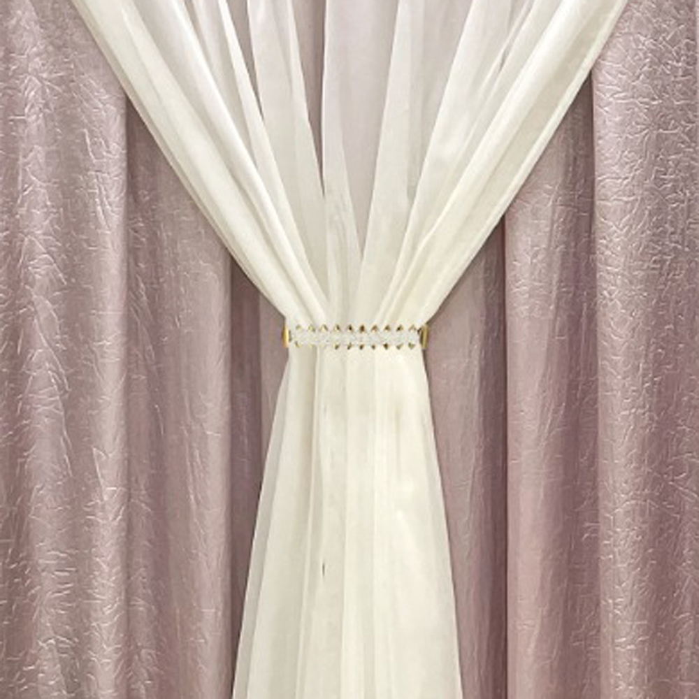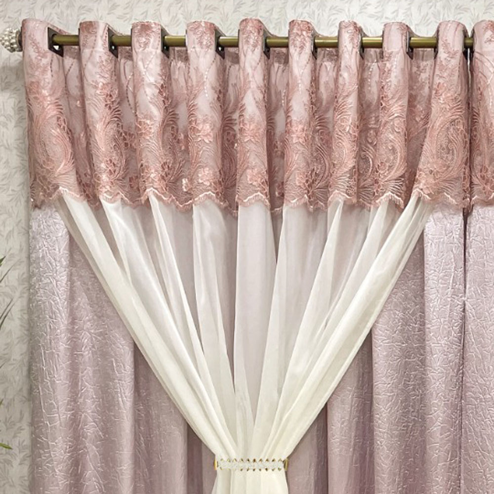 Cortina Nobreza Luxo para Varão Tecido Seda Amassada e Voal 2,00 x 1,70 Metros - Rosê