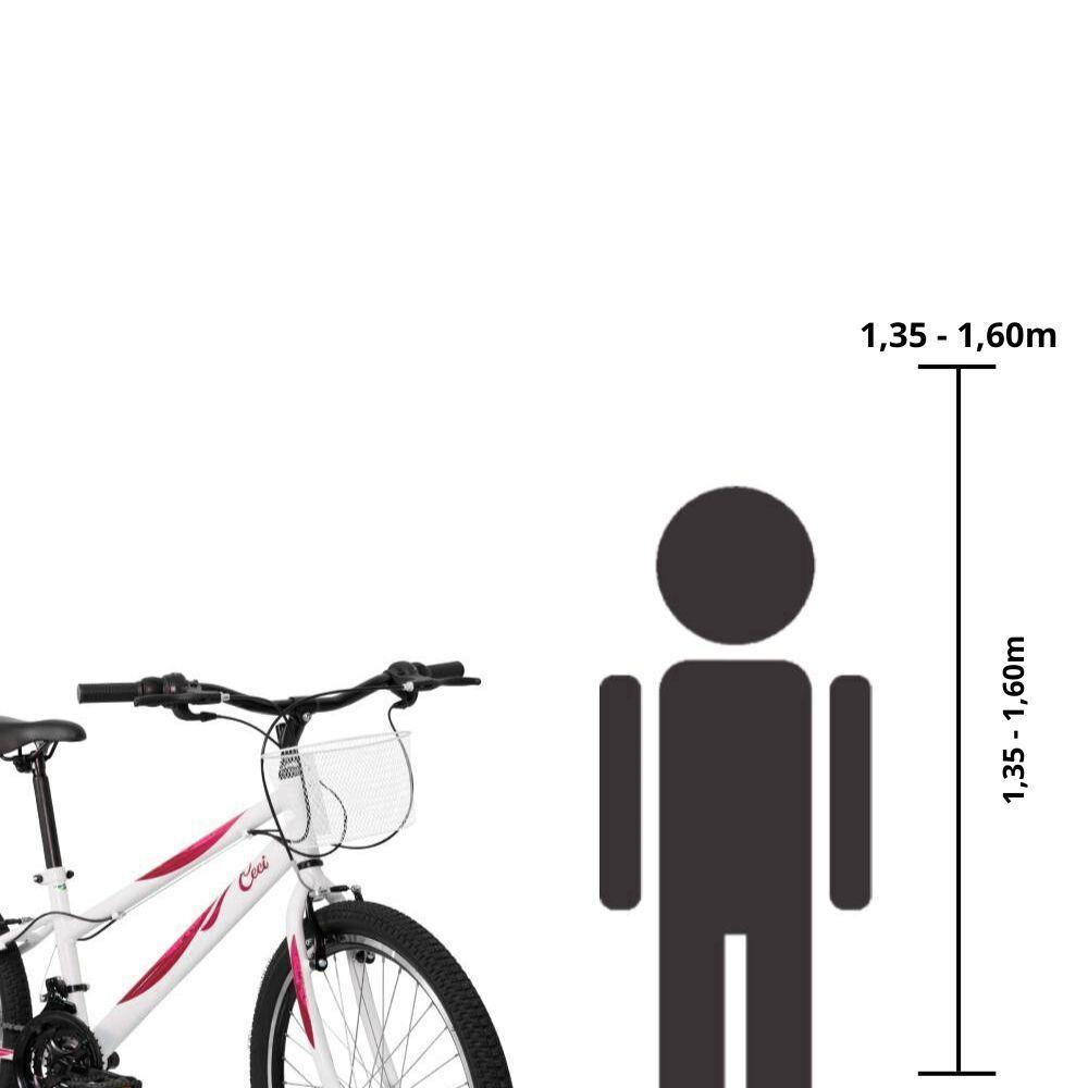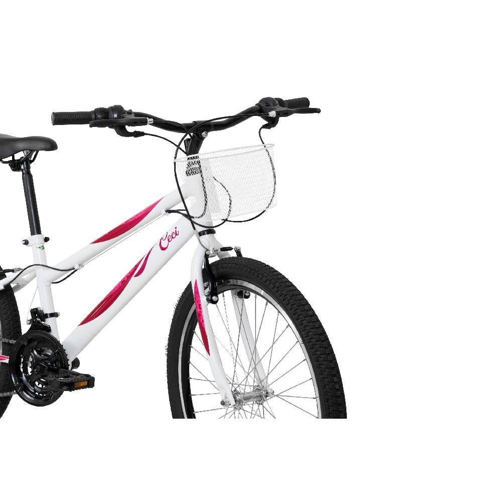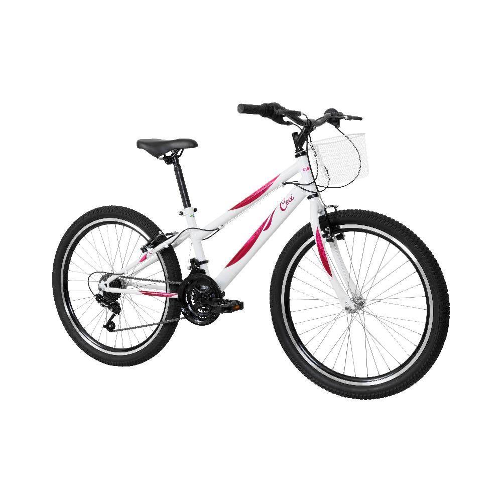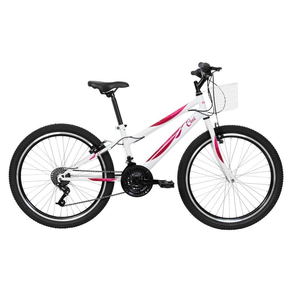 Bicicleta Caloi Ceci Branco Aro 24 — Para se adaptar a qualquer terrenoA Bicicleta Caloi aro 24 é a companheira ideal para as aventuras, perfeita para aproveitar os dias de lazer e as férias escolares com muita diversão e atividade ao ar livre. Com um design clássico na cor branca e charmosos detalhes em rosa, ela ainda vem com uma cestinha frontal que é um toque especial para levar pequenos objetos com praticidade.Equipada com 21 velocidades, ela está pronta para encarar diferentes terrenos, desde os passeios no parque até as subidas mais desafiadoras do bairro. A segurança é garantida pelos freios V-brake em aço, que oferecem uma frenagem eficiente e precisa. Sua estrutura é pensada para durar, com um quadro robusto em aço projetado para resistir a todas as brincadeiras.Especificações Técnicas:Marca: CaloiModelo: 005257.19007Cor: BrancoTipo de Bicicleta: InfantilGênero: UnissexTamanho do Quadro: 15Material do Quadro: AçoUso Recomendado: LazerCapacidade Máxima Suportada: 56 kgNúmero de Marchas: 21 velocidadesTipo de Câmbio: Caloi IndexadoTipo de Freio: V-brake de açTamanho do Aro: 24Tipo de Pneu: Vee Rubber Tipo de pedal: PlásticoGuidão: FSA SLK mescla de carbono, cromoly e alumínioSelim: Caloi infantilManoplas:orrachaAcessórios Inclusos: CestoDetalhes Visuais: Detalhes em rosaDimensões do produto (CxLxA): 156x62x96 cmDimensões do produto embalado (CxLxA): 130x21x65cmPeso bruto: 15,8 kgPeso liquido: 14,5 kgGarantia: 90 dias nos componentes — 24 meses no quadroImportante: As imagens podem sofrer variações de acordo com a resolução de seu monitor, iluminação ou ainda, percepção visual.