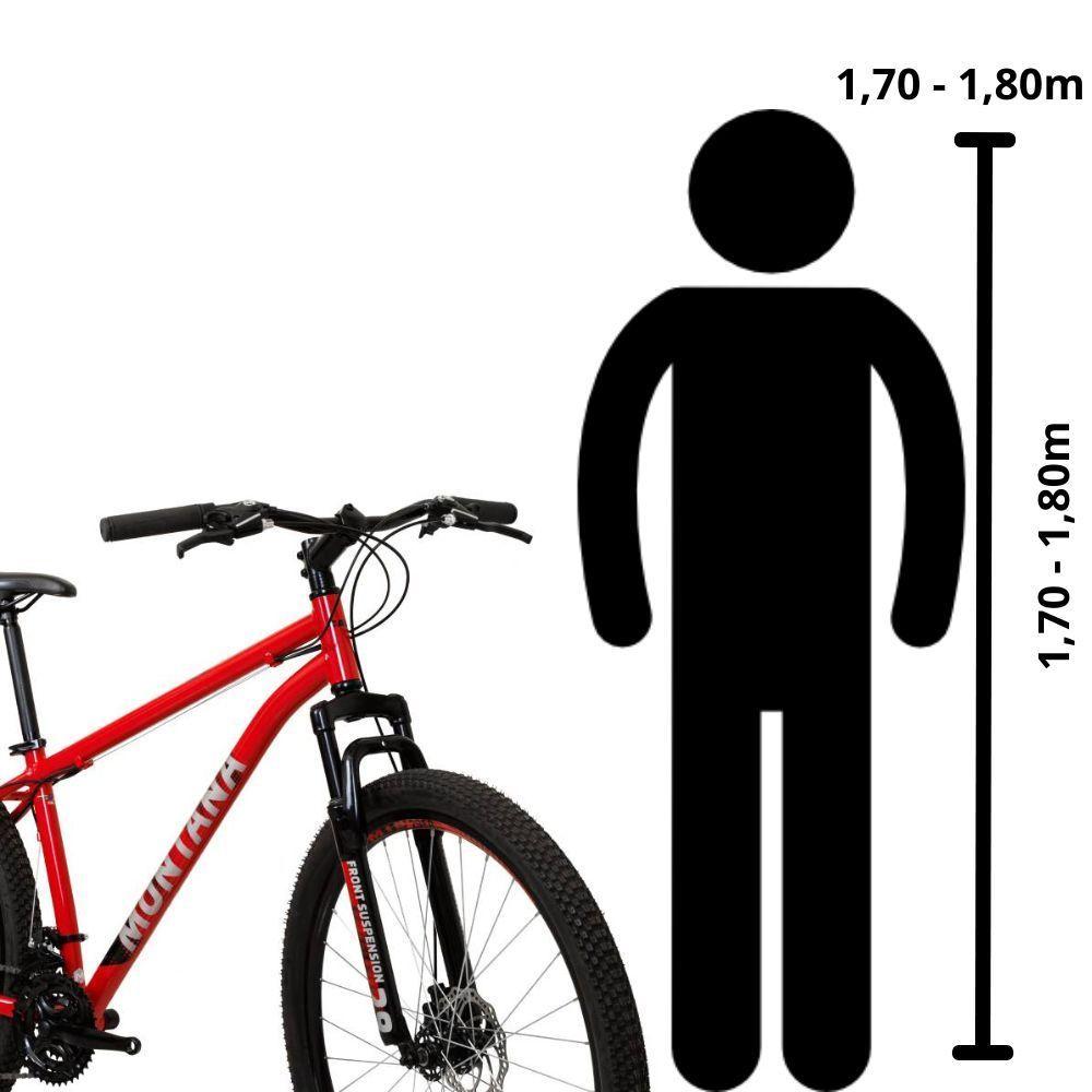 Bicicleta Caloi Montana Vermelho — A versatilidade para te levar a grandes aventurasA Bicicleta Urbana Caloi aro 29 é a combinação perfeita de tecnologia e design para quem busca uma performance superior no dia a dia. Projetada para ser ágil e confortável, ela transforma seus deslocamentos e passeios em uma experiência única.Suas rodas deslizam com mais facilidade pelo asfalto, superando obstáculos com fluidez e mantendo a velocidade. Para uma segurança superior em qualquer clima, os freios a disco mecânico oferecem uma capacidade de frenagem potente e confiável.A suspensão com 60mm de curso absorve os impactos das ruas, enquanto o quadro em alumínio torna a bicicleta mais leve e ágil de manobrar, resultando em um pedal suave e com maior controle. O câmbio Shimano Tourney de 7 velocidades garante trocas de marcha precisas, adaptando-se facilmente ao seu ritmo.É uma bicicleta construída com componentes de qualidade, pronta para acompanhar a sua rotina por muito tempo.Especificações Técnicas:Marca: CaloiModelo: 009661.19001Cor: VermelhoTipo de Bicicleta: UrbanaGênero: UnissexTamanho do Quadro: 17Material do Quadro: AlumínioUso Recomendado: UrbanoCapacidade Máxima Suportada:100 kgNúmero de Marchas: 7 velocidadesTipo de Câmbio: Shimano TourneyCurso da Suspensão: 60mm Tipo de Freio: Disco mecânicoTamanho do Aro:29Guidão: FSA SLKSelim: Royal Ciclo - VelocePedais: PlásticoManoplas: BorrachaDetalhes Visuais: Detalhes em branco e vermelhoDimensões do produto embalado (CxLxA) 145X21X75cmDimensões do produto (CxLxA) 177x68x110cmPeso bruto: 16,2 kgPeso líquido: 15,7 kgGarantia: 90 dias Componentes — 5 anos no quadroImportante: As imagens podem sofrer variações de acordo com a resolução de seu monitor, iluminação ou ainda, percepção visual.