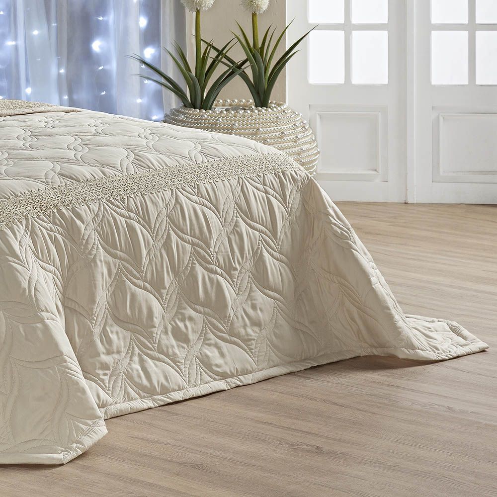 Kit Cobre Leito Colcha Royalle Queen Alto Padrão Microfibra Peletizada 7 Peças - Bege