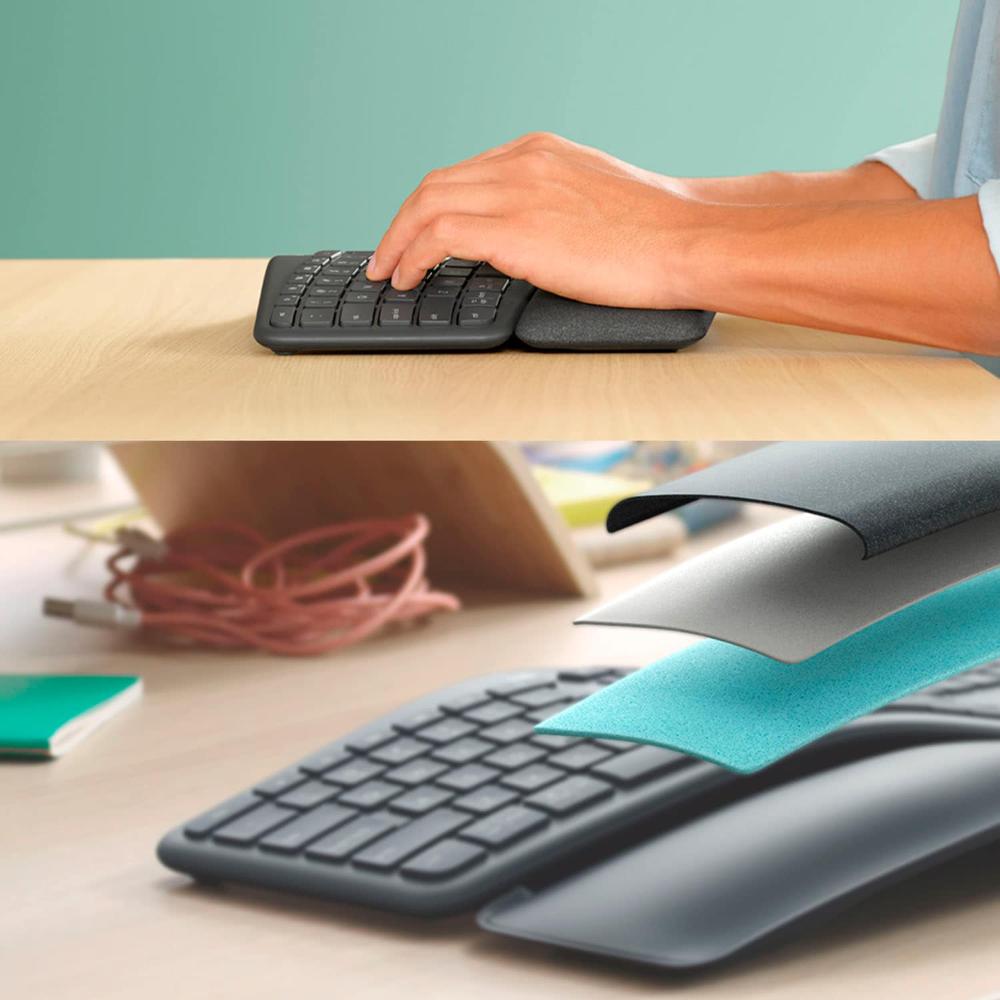 Teclado Gaming Wireless Scissor Logitech ERGO K860 para Windows e M@c com Palm Rest - preto-920-009166