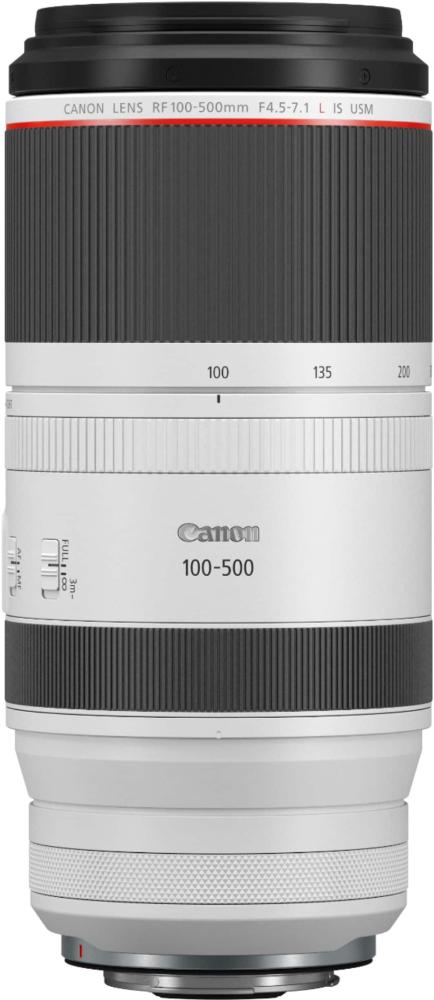The RF100-500mm F4.5-7.1 L IS USM super telephoto zoom lens delivers a superb combination of cutting-edge performance, compact construction and brilliant resolving power specifically designed for the EOS R system. The versatile range of 100mm to 500mm is ideal for sports, wildlife, and even aviation photography while maintaining a compact, travel-ready size and weight. The lens features one Super UD and six UD lenses. Fluorine coated front and rear lens elements provide resistance to dirt, moisture and oils, while L-series construction with dust and weather resistance provide reliability even in challenging conditions. With its built-in, 3-mode, and up-to 5-stop optical image stabilization system, and high-speed Dual Nano USM autofocus motors, the RF100-500mm F4.5-7.1 L IS USM will prove its superb optical performance, over and over again.