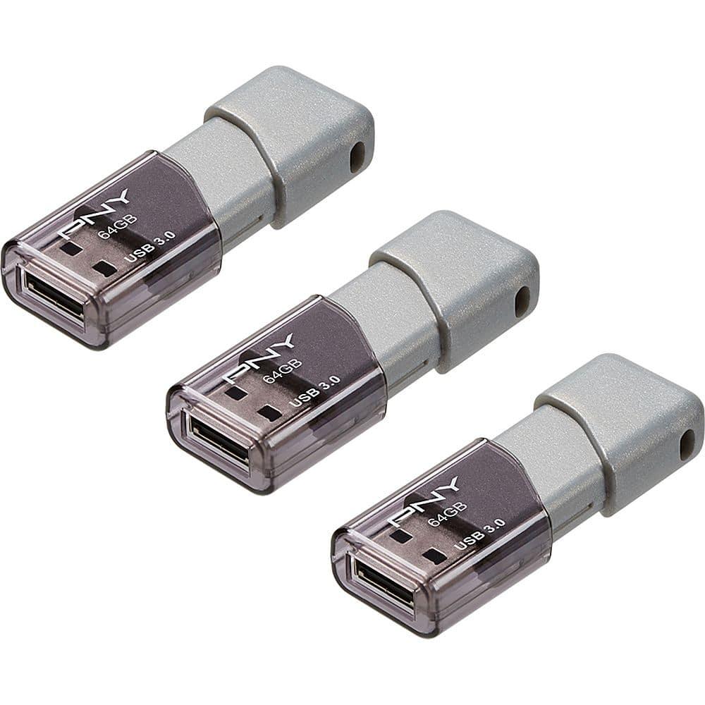 Pen Drive PNY - Turbo Attaché 3 64 GB USB 3.0 Tipo A Flash Drive, pacote com 3 - Prata-P-FD64GX3TBOP-MP