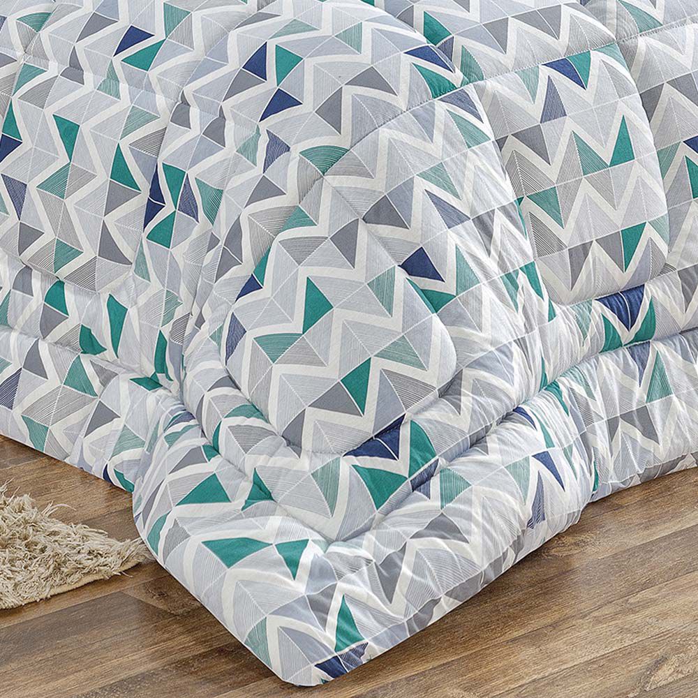 Edredom Quality Queen Estampado Dupla Face Algodão Fio Penteado - Azul Geométrico