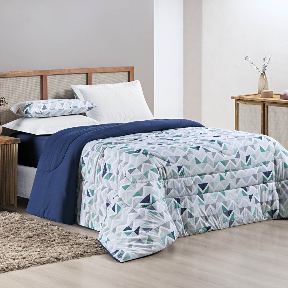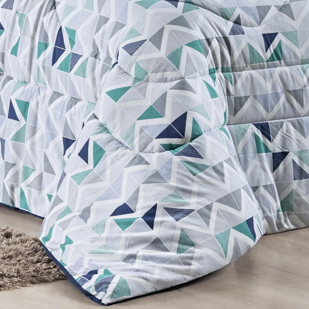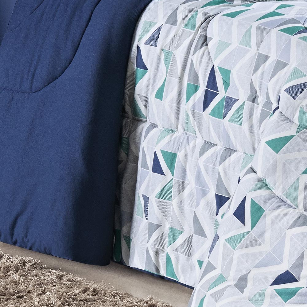 Edredom Quality King Estampado Dupla Face Algodão Fio Penteado - Azul Geométrico